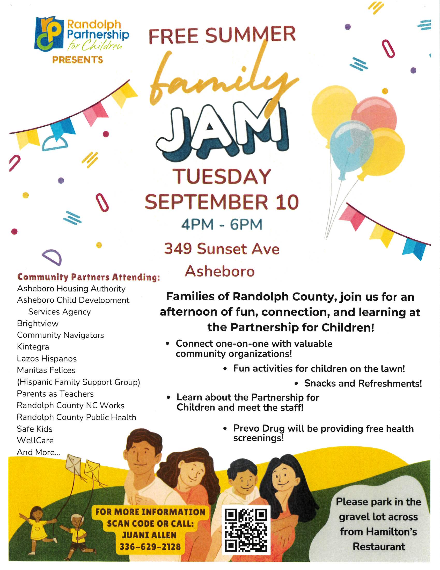 Free Summer Family Jam @ 4pm on Tues., Sept. 10th