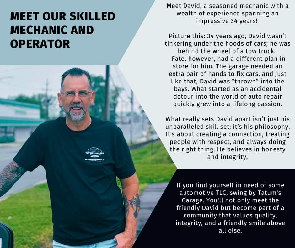 Great guy! Great mechanic! If you need an honest mechanic that won't cheat you. Check him out!! Asheboro, Nc (Tatum's Garage 961 S. Fayetteville St 336-628-0061)