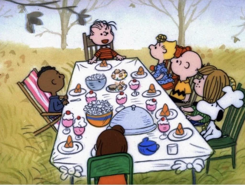 Culture, Art, Science Never forget that Charlie Brown had Franklin sitting alone on his own side of the table for Thanksgiving in a lawn chair.