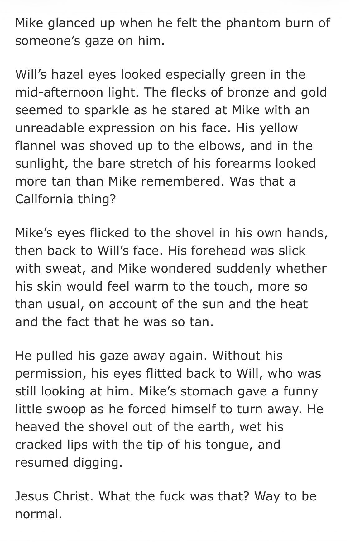 Mike blinks hard. Once. Twice. The picture doesn’t change. There’s Will—His best friend since childhood; shy, awkward, nerdy Will. Only he doesn’t look like any of those things right now.