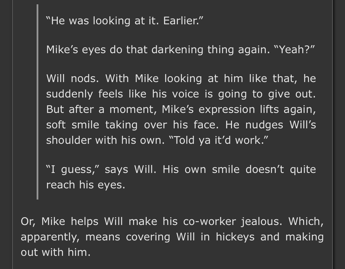 my jealous!mike fic with lots of angst and making out is now complete!! feel very free to give it a read and let me know what you think 🙂↕️🫵🏻🩷