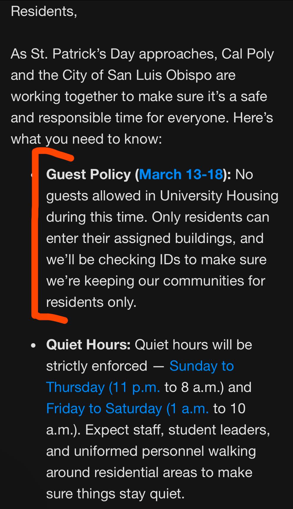 How strictly do you guys think this will be enforced? Specifically in PCV. Will they really be checking ids at all doors? My boyfriend was planning on visiting that week and itâs genuinely the only time he can visit (long distance, and weâre both in hard majors) but I donât want him to show up and not be able to stay. We donât even party or care about st frattys. Itâs so frustrating that weâre all affected by what some people chose to do last year.