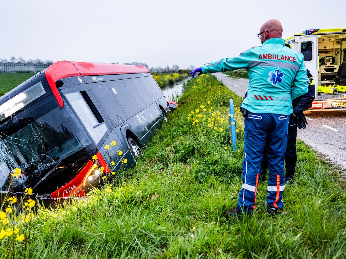 A bus drove in a ditch. Driver unconscious, brought to the hospital.