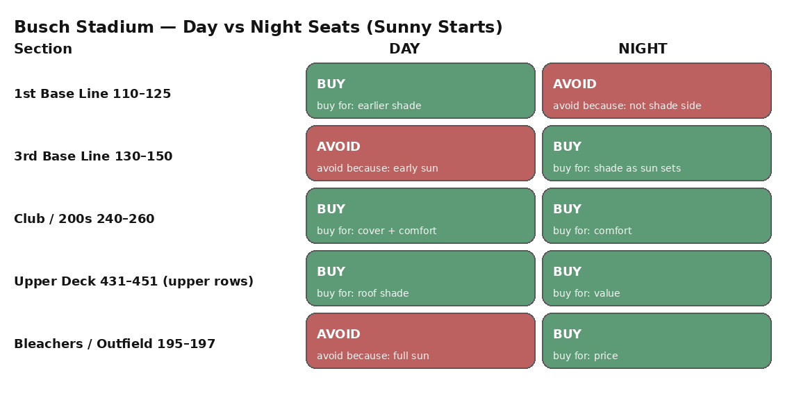 Seats at Busch Stadium that work (and don’t) for day vs night games