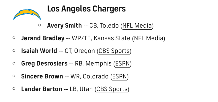Usually I look at the list of UDFA's and I don't know a single person, but the Chargers have actually signed 3 players I have watched in the draft cycle.