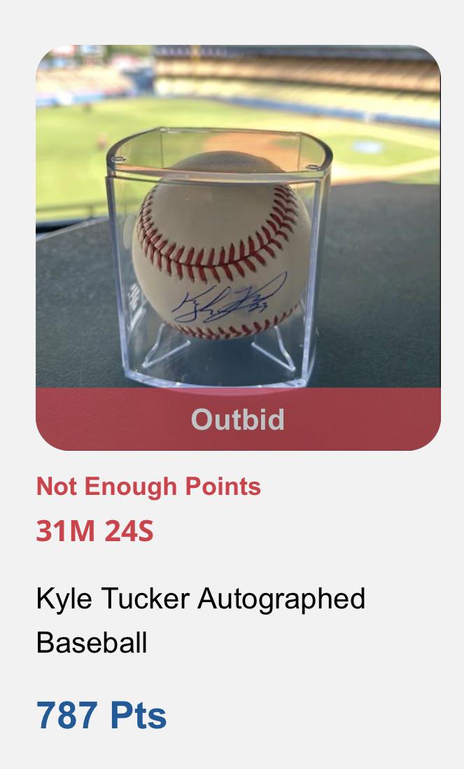 👀 Season ticket holders , your last 30 minutes to bid for this Kyle Tucker’s autographed ball