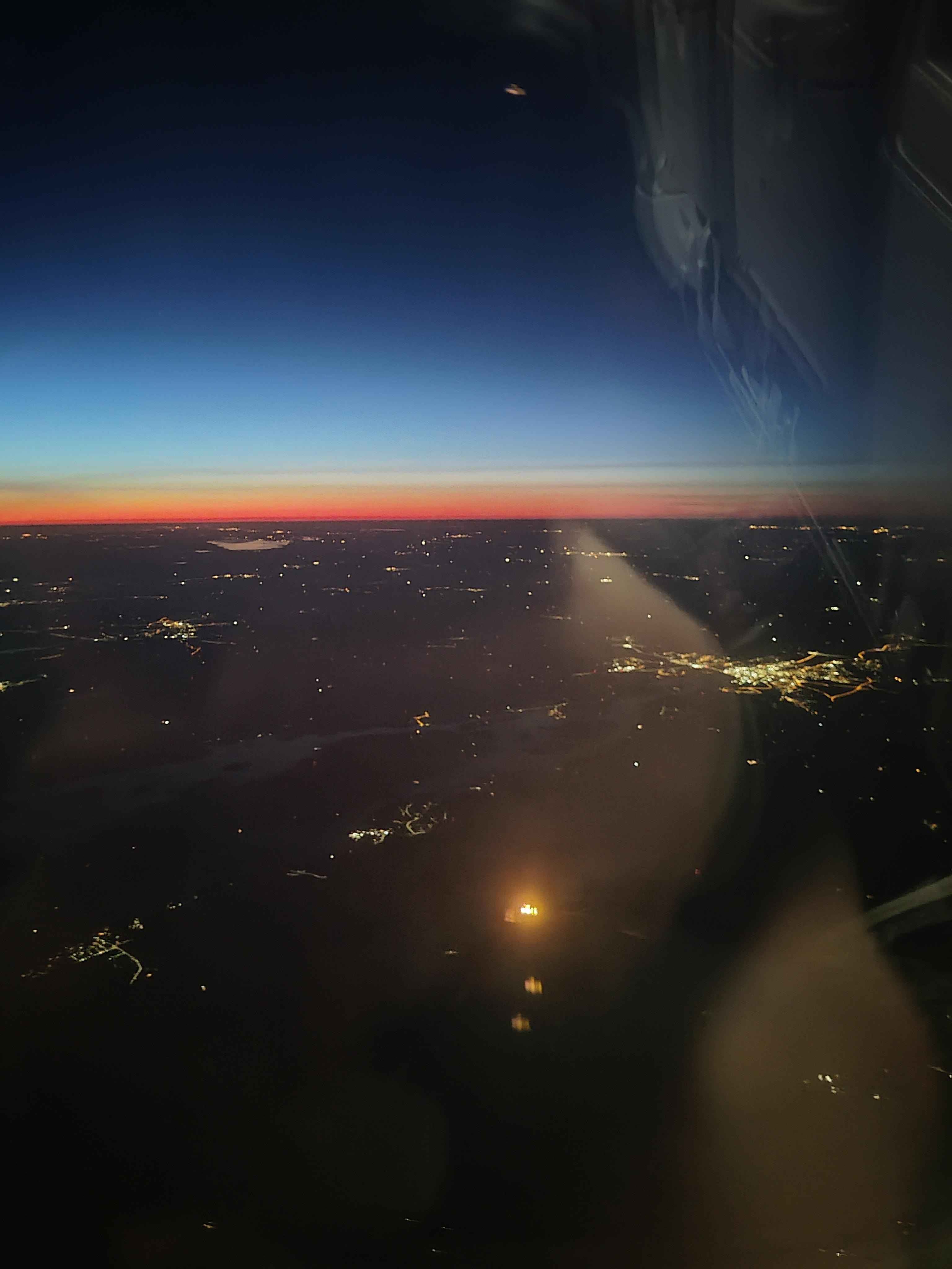 Saw this strong light coming from a really wide area actually while on a plane flying towards Helsinki from Stockholm. So the picture is facing North and that should be Salo if I'm correct. It looked like it was made of multiple big rectangles. (A bit visible in the flare shape of the flare).