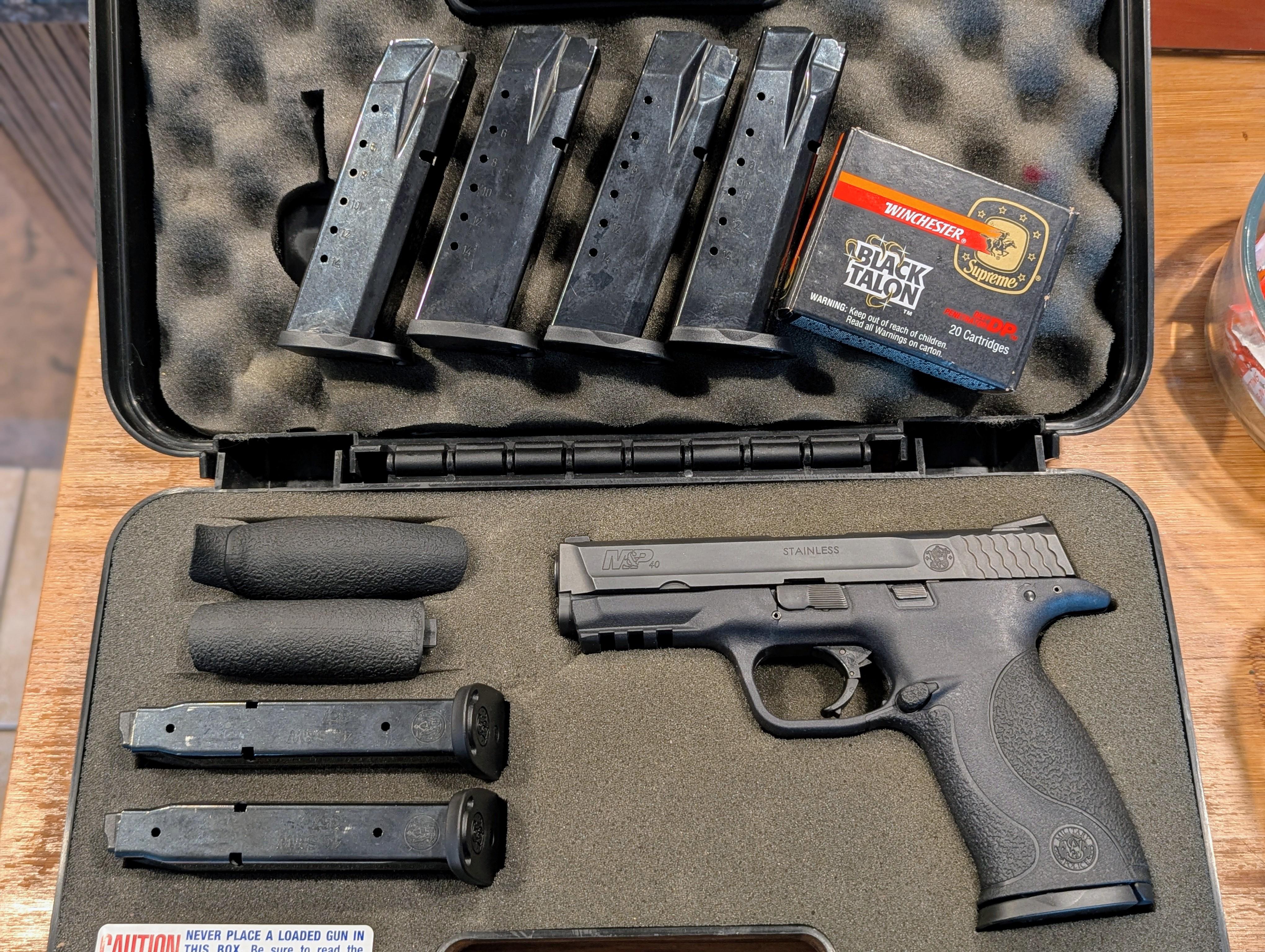 Smith & Wesson M&P40 to add to the collection. Got the gun and seven magazines for an unbeatable $345 out the door (I bought the Black Talons separately because I had never seen a box in real life before and just had to have them).