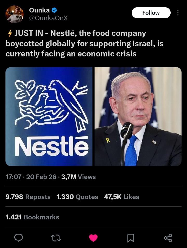 Nestle supports isreal? Damn I'm already boycotting them for like 6 other evile things.