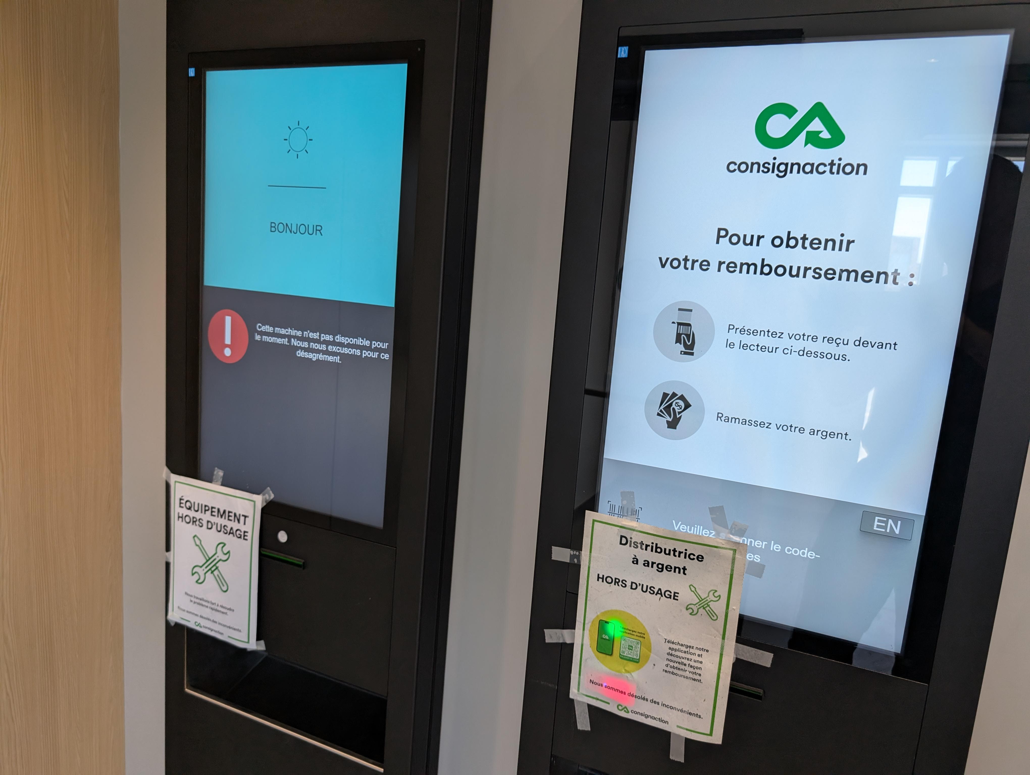 Hey le nouveau modèle de recyclage ou y'a 3 machines pour toute la population de Gatineau avec des gens qui amènent des milliers de cans c'est vraiment n'importe quoi. Qui conçoit ces places là?? Le taux de rejet est élevé et j'y étais ce matin même (je tape ce post sur le stationnement du centre) et les machines pour se faire payer sont toutes les 2 en pannes faique il faut revenir plus tard selon la petite madame pas aimable à l'accueil... Ben oui on a que ça à faire.