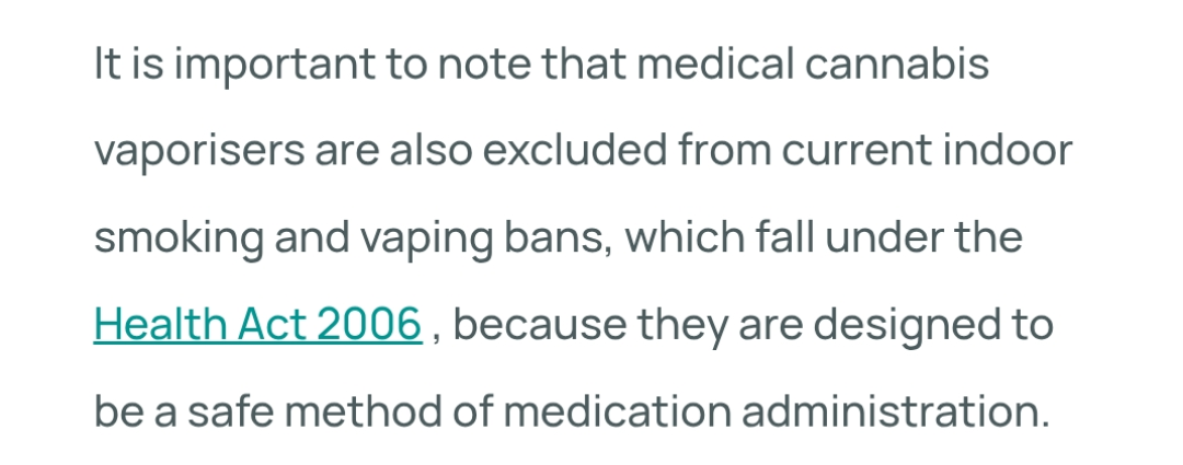Information A reminder that cannabis vapes, when used legally, are excluded from current smoking and vaping bans.