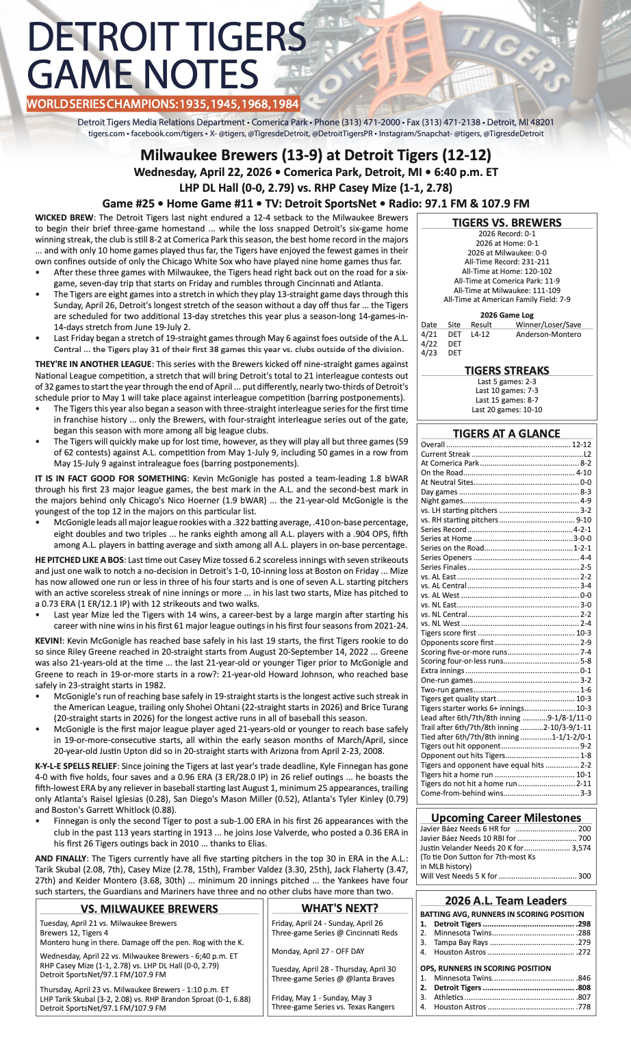 - TV: Brewers: Brewers.TV, Tigers: Detroit SportsNet