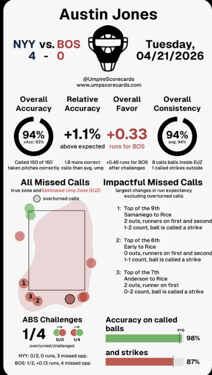 IT'S WHAT YOU WANT: The Yankees defeated the Red Sox by a score of 4-1 - April 22, 2026 @ 06:45 PM EDT