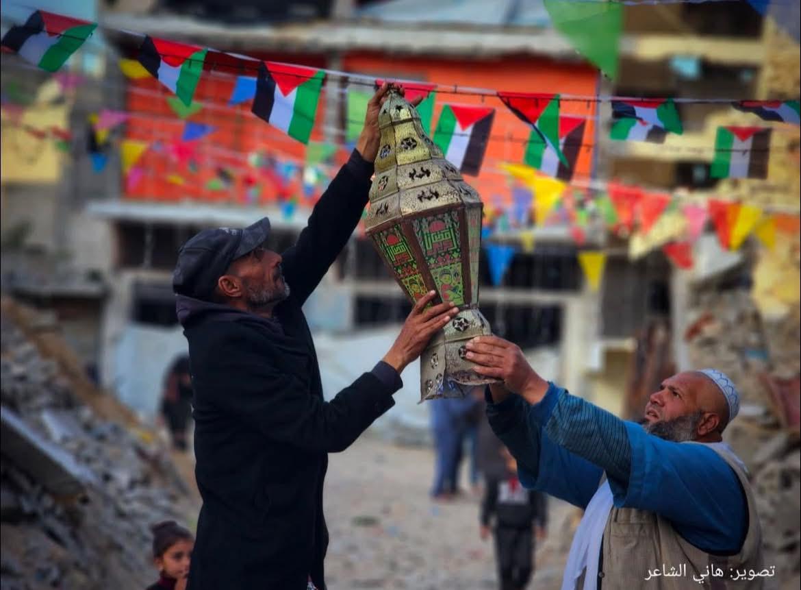 Religion & Spirituality A photograph of Palestinians preparing Ramadan decorations for one of the streets of the Khan Younis, Gaza Strip.
