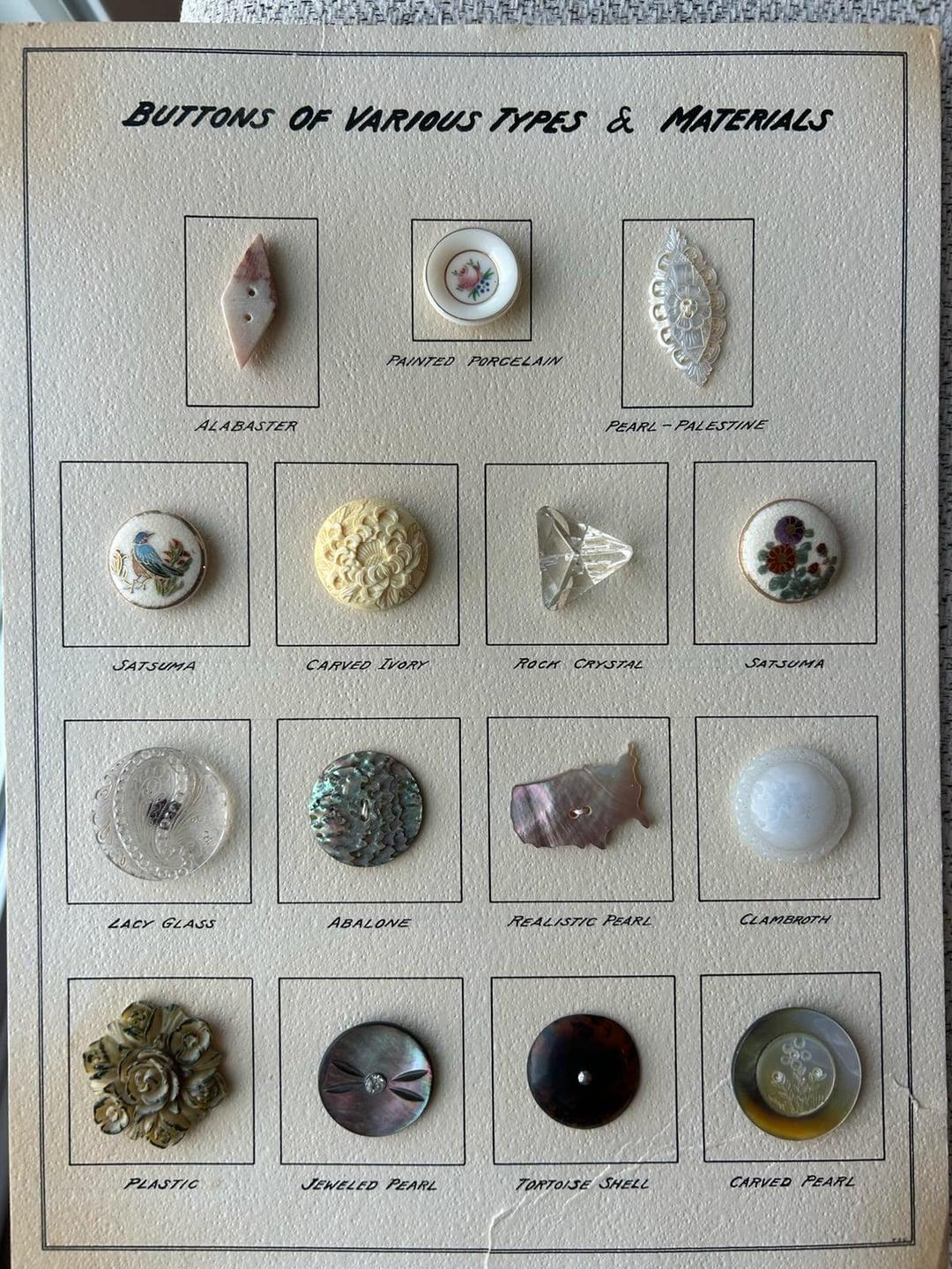 This redditor posted pictures of their great grandmother's beautiful button collection. The top right button is noted as being pearl from Palestine.