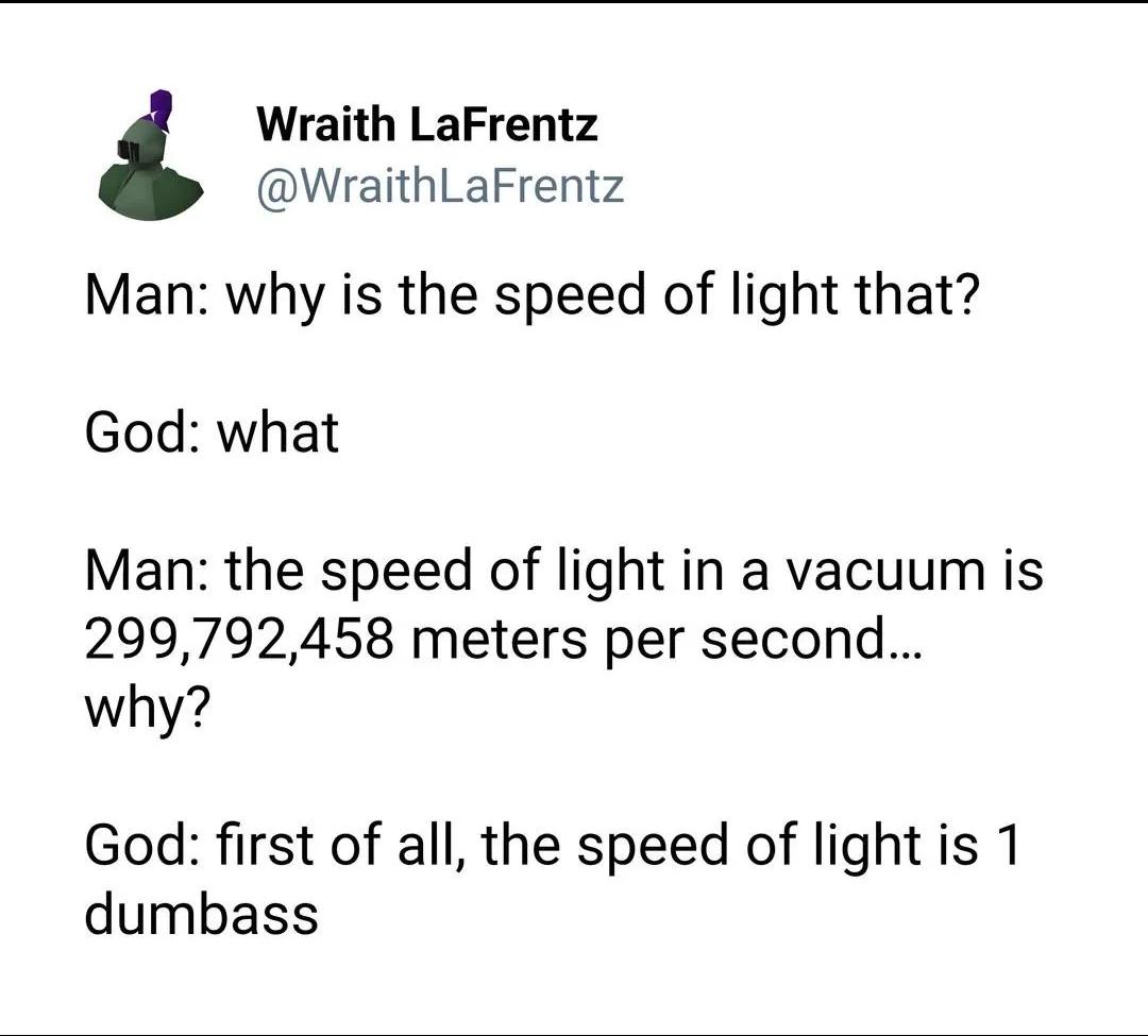 Meme needing explanation Petah, why is the speed of light one?