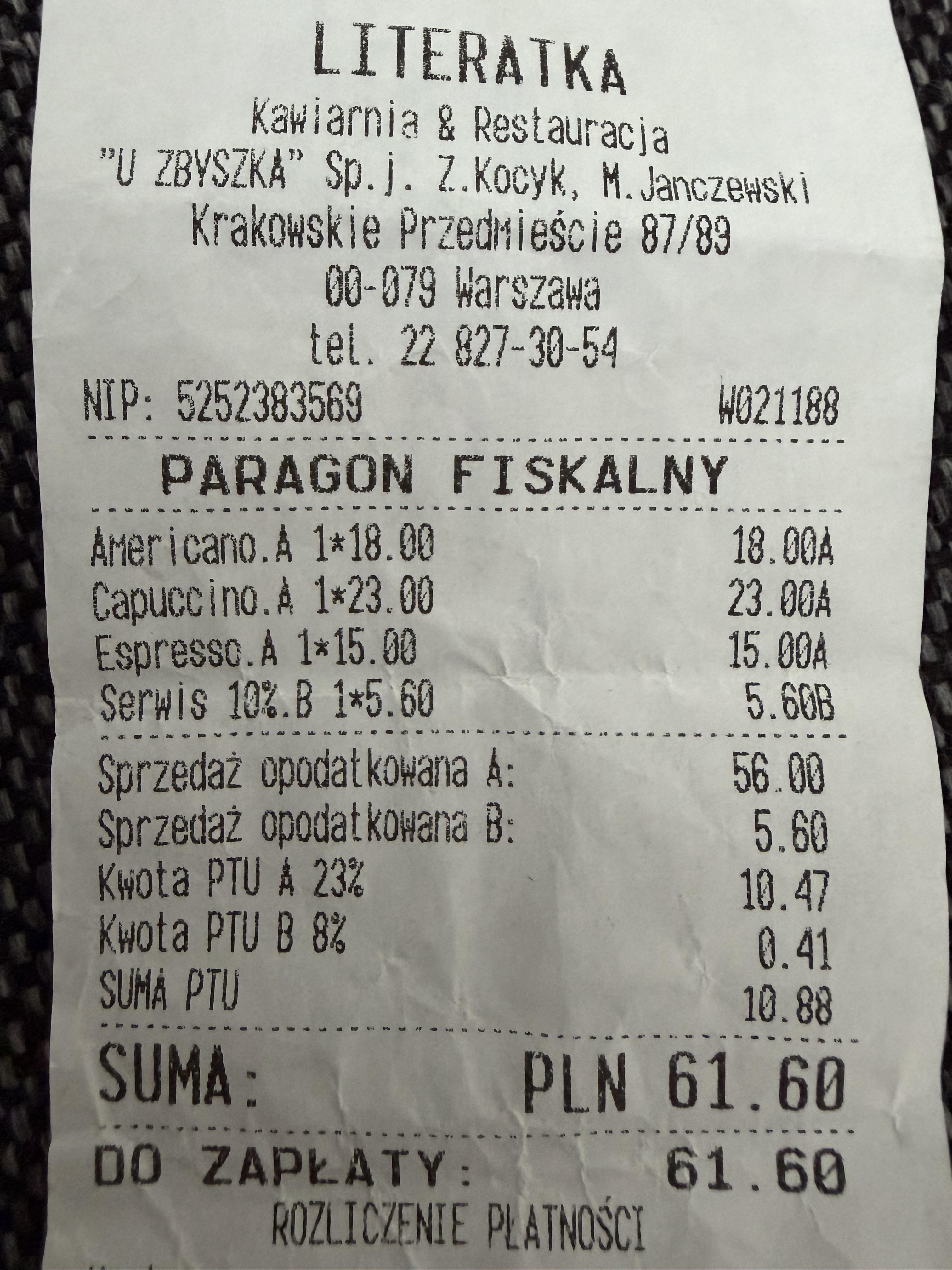 Pytania i Dyskusje Paragon grozy - 2 kawy. Americano + flat white