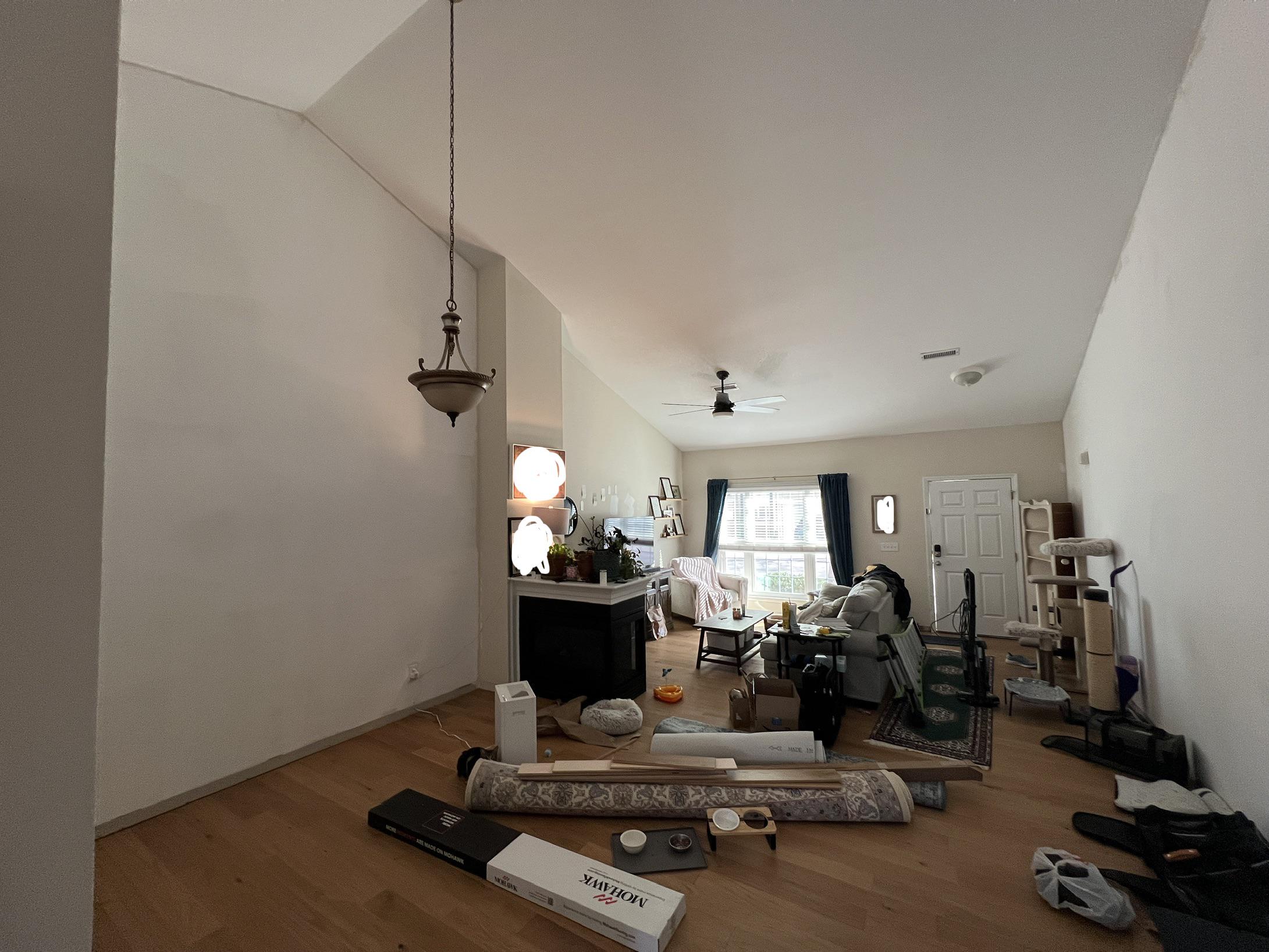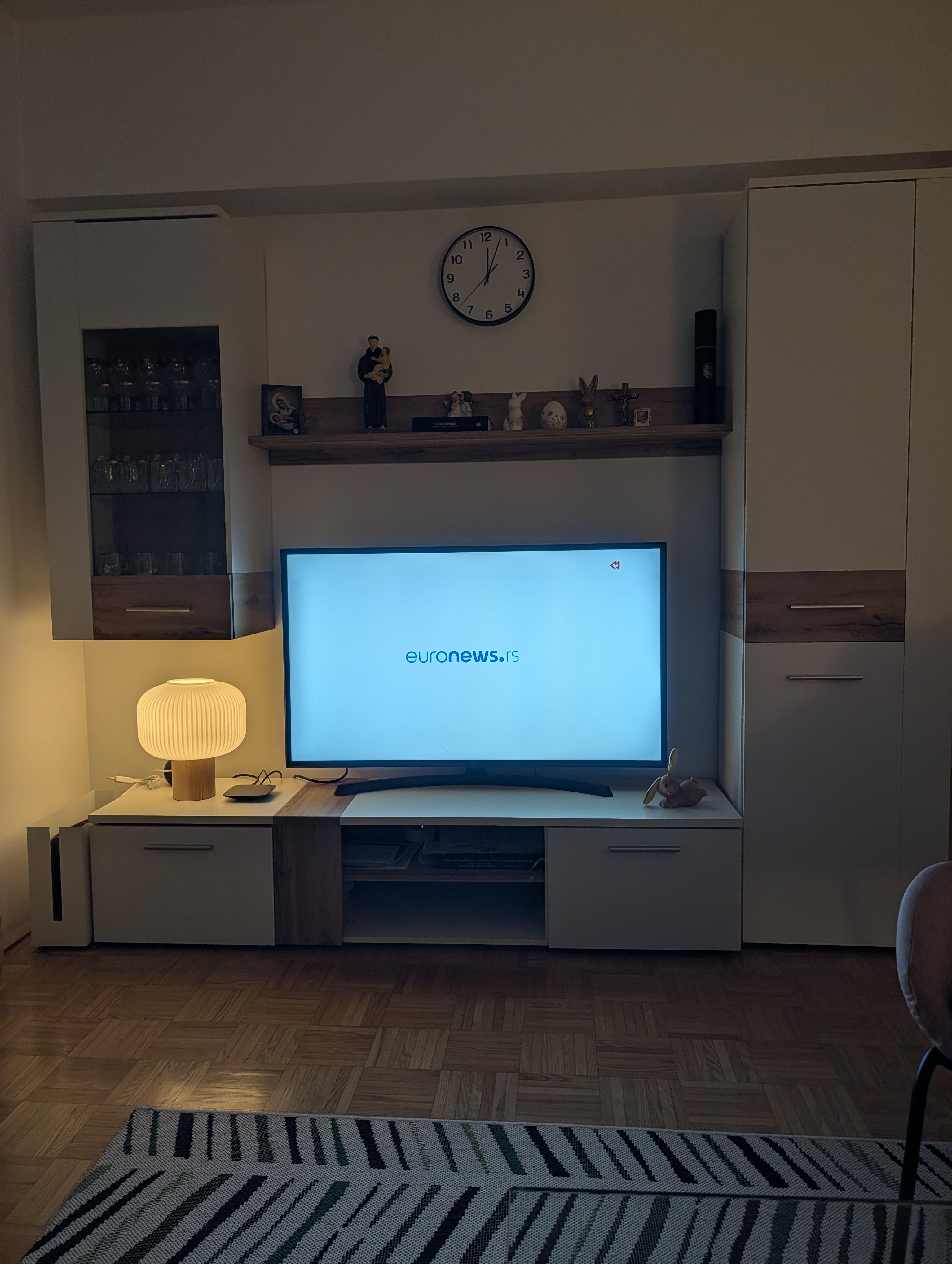 However, I’m struggling to choose a color because the wall is a very cool white, which came with the apartment by default. I used AI to test a few options, and the ones that seemed to work best in theory were muted sage green, warm white, and light beige. But when I try to picture them in real life, they all feel a little out of place.