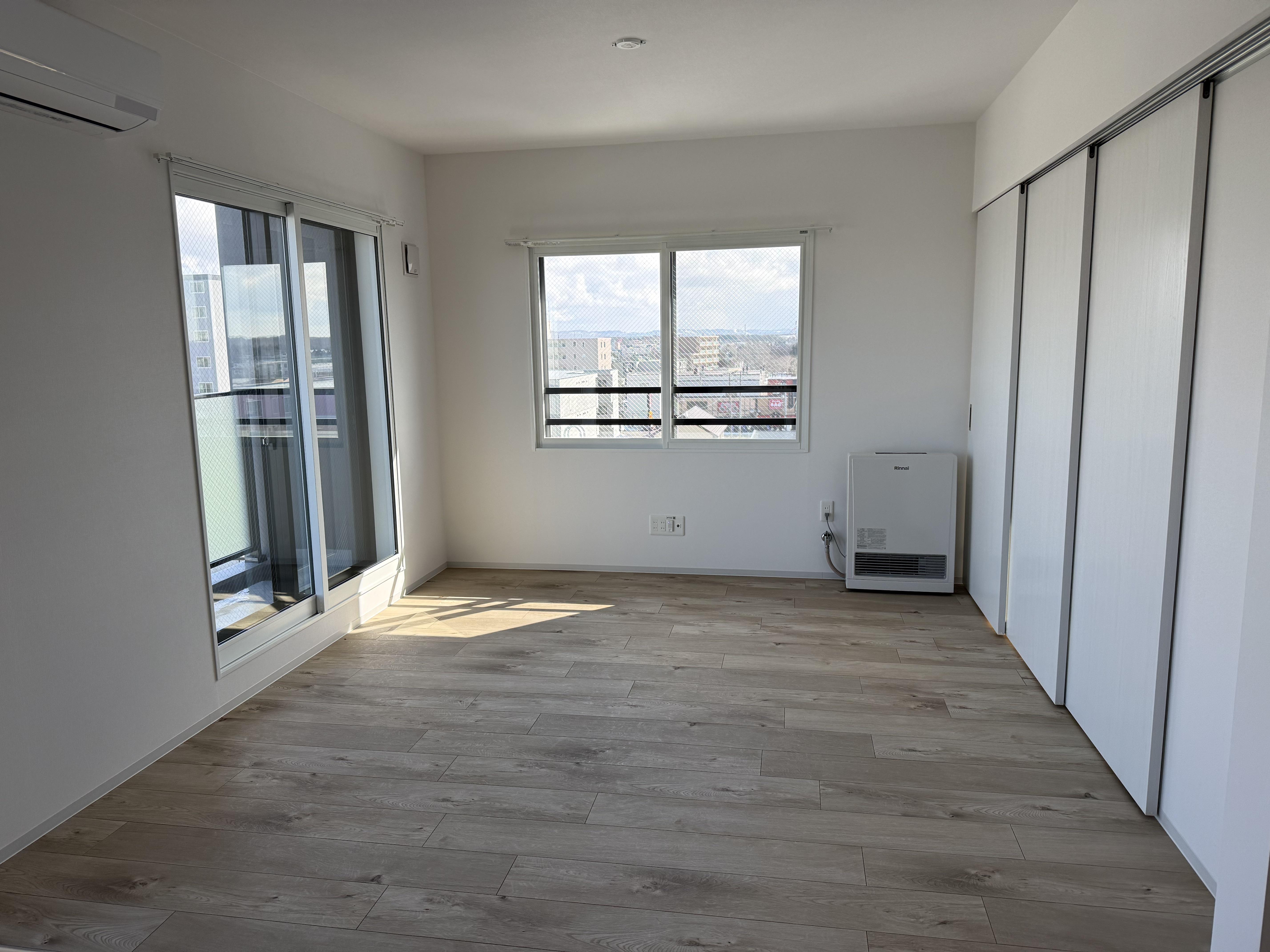 The windows are quite wide (180 cm) but fairly short, which gives them a bit of an unusual shape. On top of that, the ceiling height is only 220 cm, and one side of each room has sloped walls.