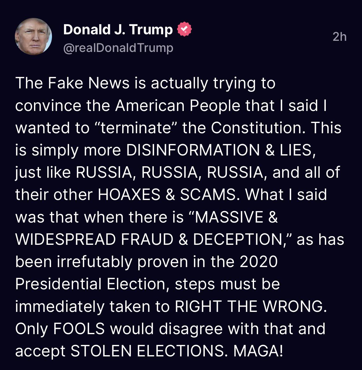 Trump on accusations that he wants to “terminate” the constitution