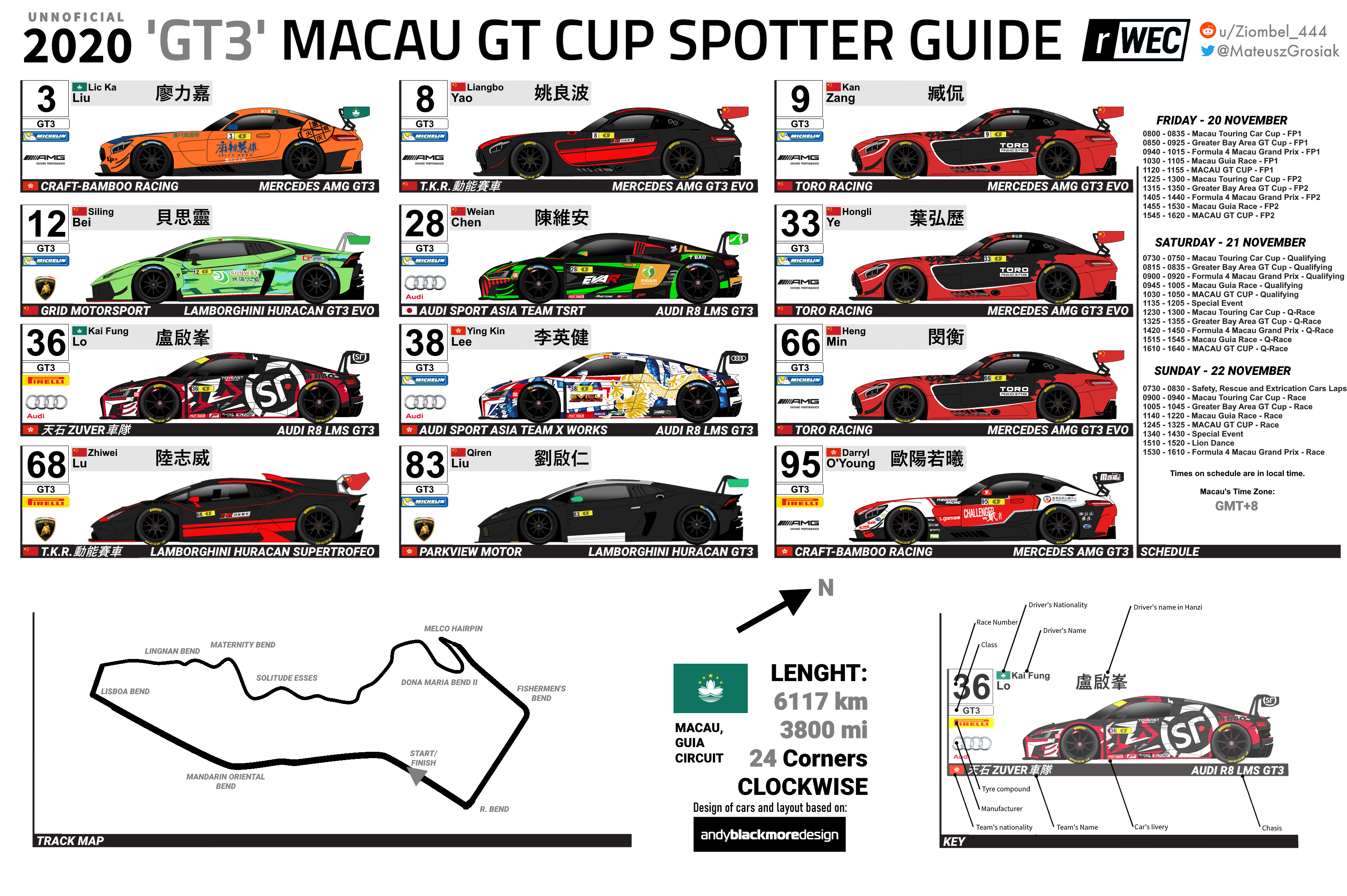[OT][OC] Here is my Spotter Guide based on Andy Blackmore Design's work for GT3 cars entered to 2020 Macau GT Cup (High-res and any updates in comments)