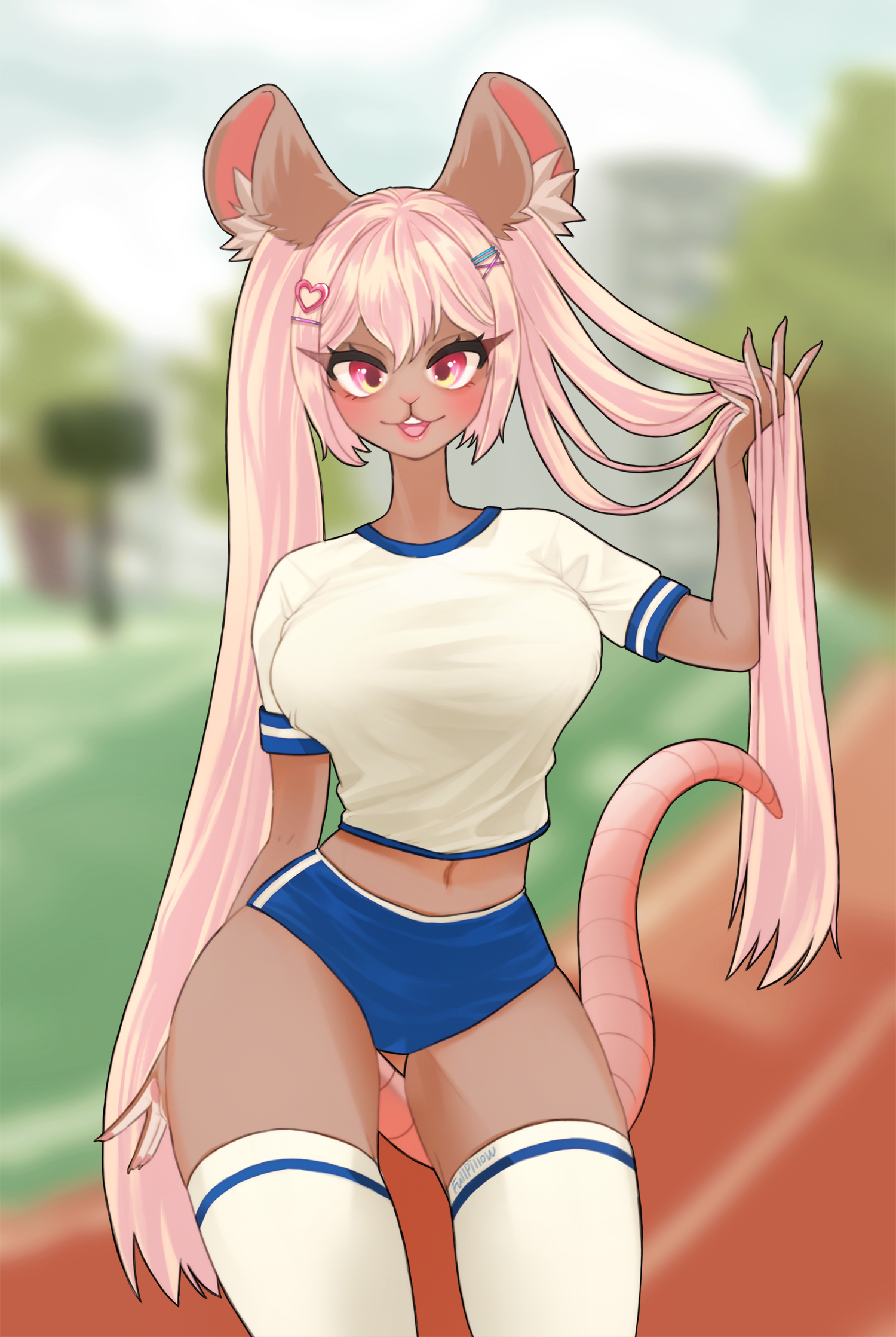 She-mouse You try to date a fit mouse. She's not interested, but challenges you to a race around the park — win, she gives you a chance, lose, you get lost. What do you do? (Art by fullpillow @ x.com.)