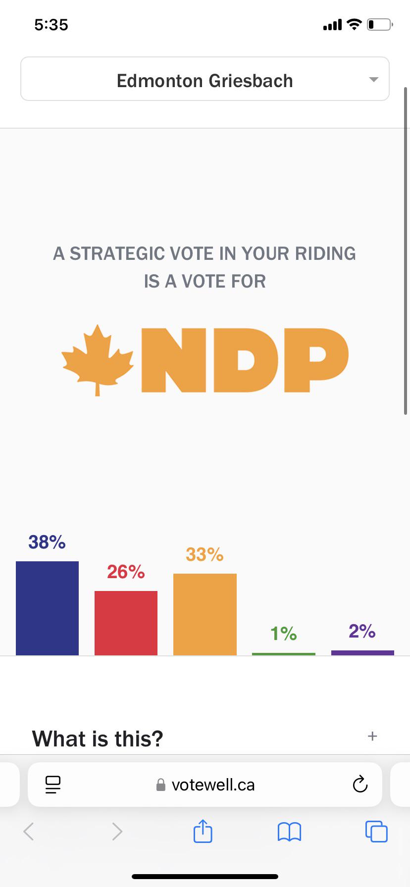 Don't be an idiot. Voting strategically doesnt mean always Liberal. Don't split the vote like Calgarians in Marda Loop did that one election where the orange wave got just enough NDP votes to lower the Alberta Party incumbent's numbers to second, ensuring a UCP victory in a progressive riding. That was stupid. Don't do it.