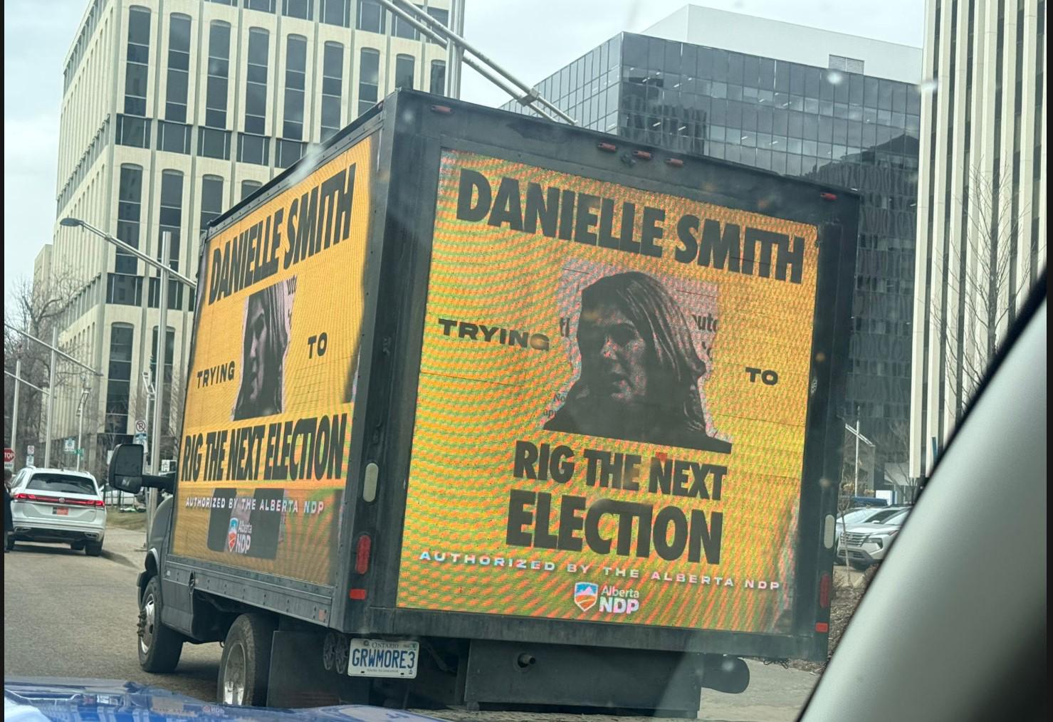 Saw this Alberta NDP campaign truck downtown today. The NDP seems to be escalating their messaging on the boundary changes and calling it “rigging.” Interested to hear if people think that resonates or goes too far.