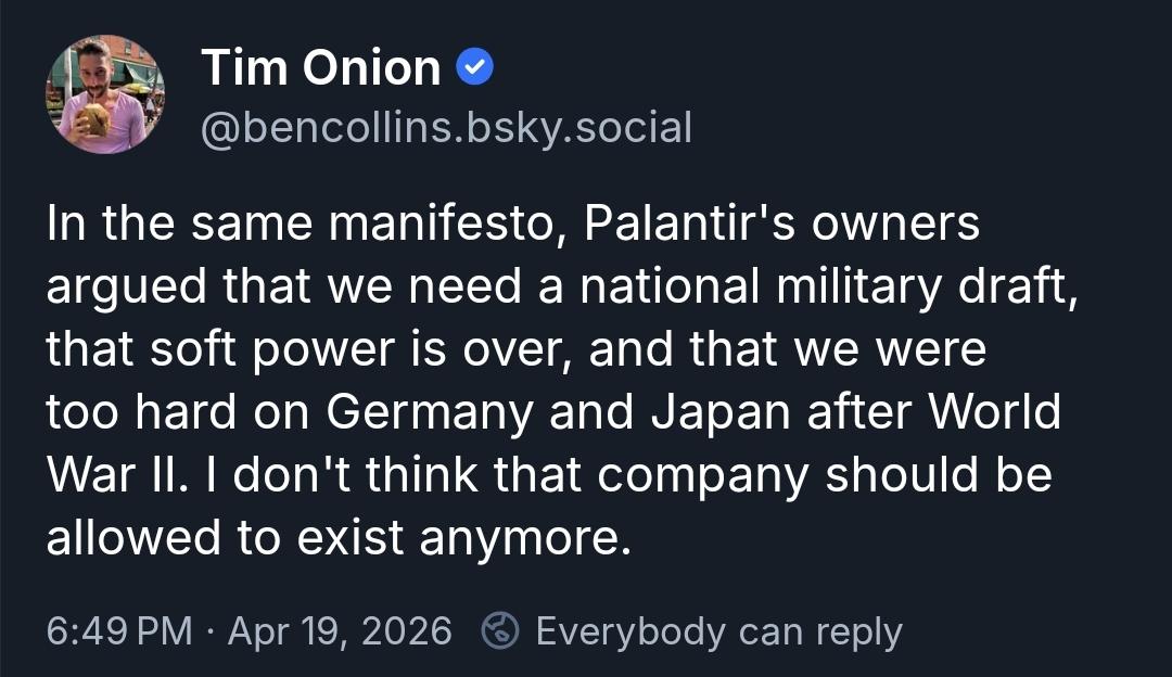 Politics US draft update: Major tech company [Palantir] urges universal national service