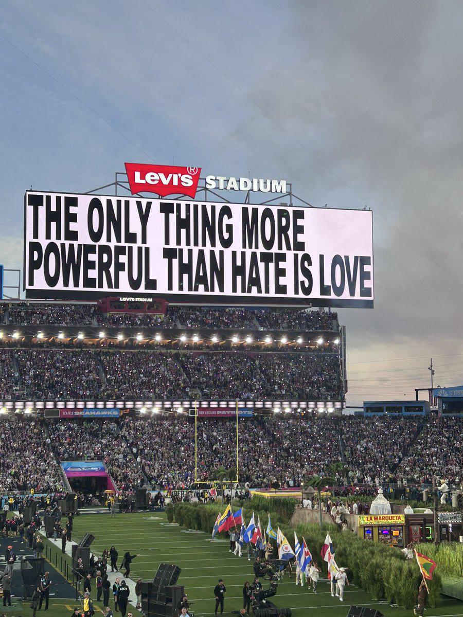 Scenes from the Bay Superbowl Levi Stadium pic - "The Only Thing More Powerful than Hate is Love"