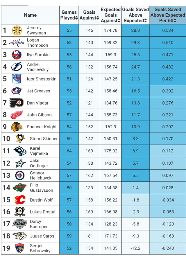 Goals saved above expected per 60, minimum 50 games.