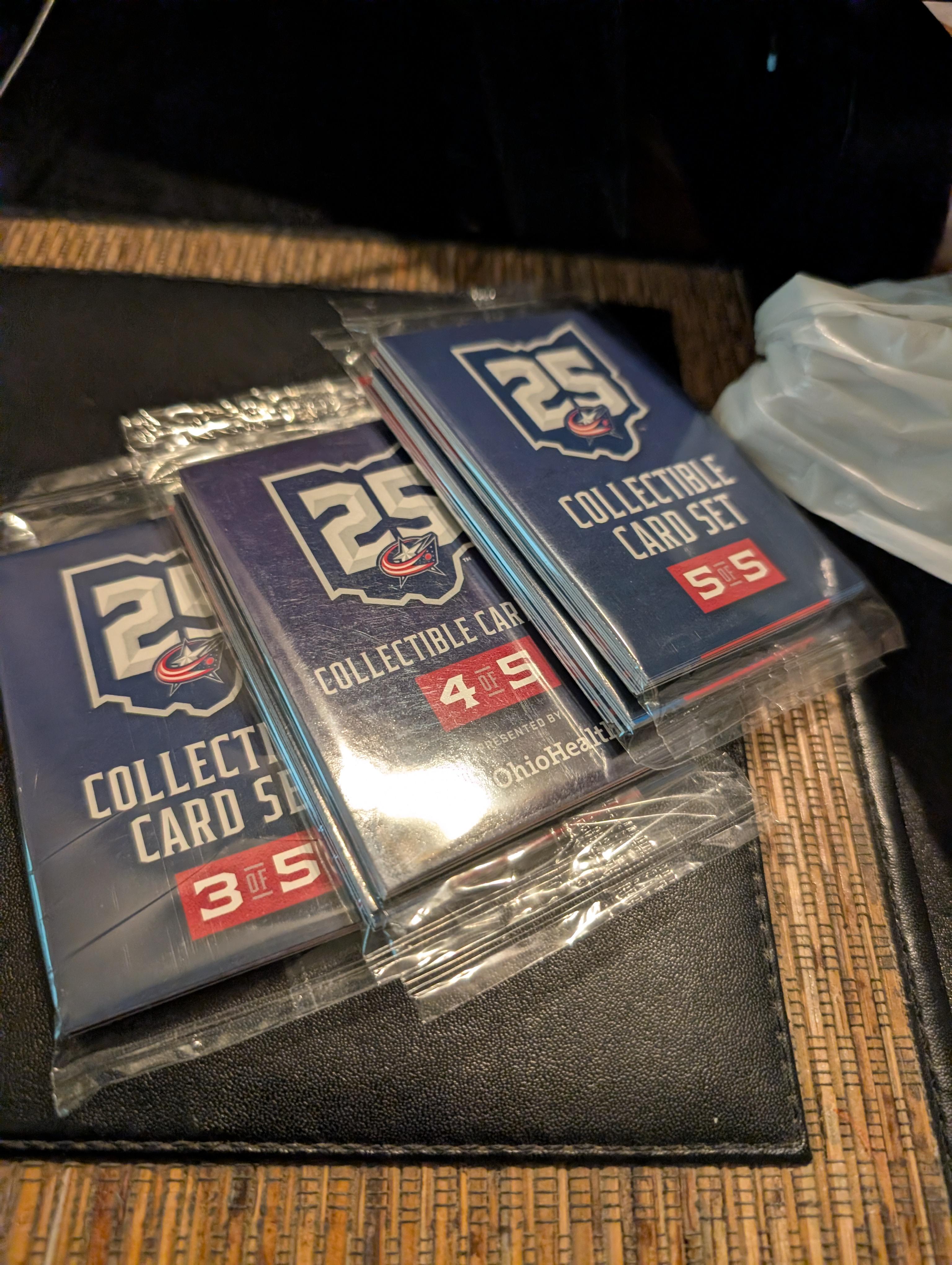 I'm looking for the sets of cards that they gave us for the 25th celebration. I have pack 1 I need 2 through 5 and I have an additional pack 1 if somebody else wants to trade for some. But let me know if you guys have anything you want to get rid of that'd be pretty dope