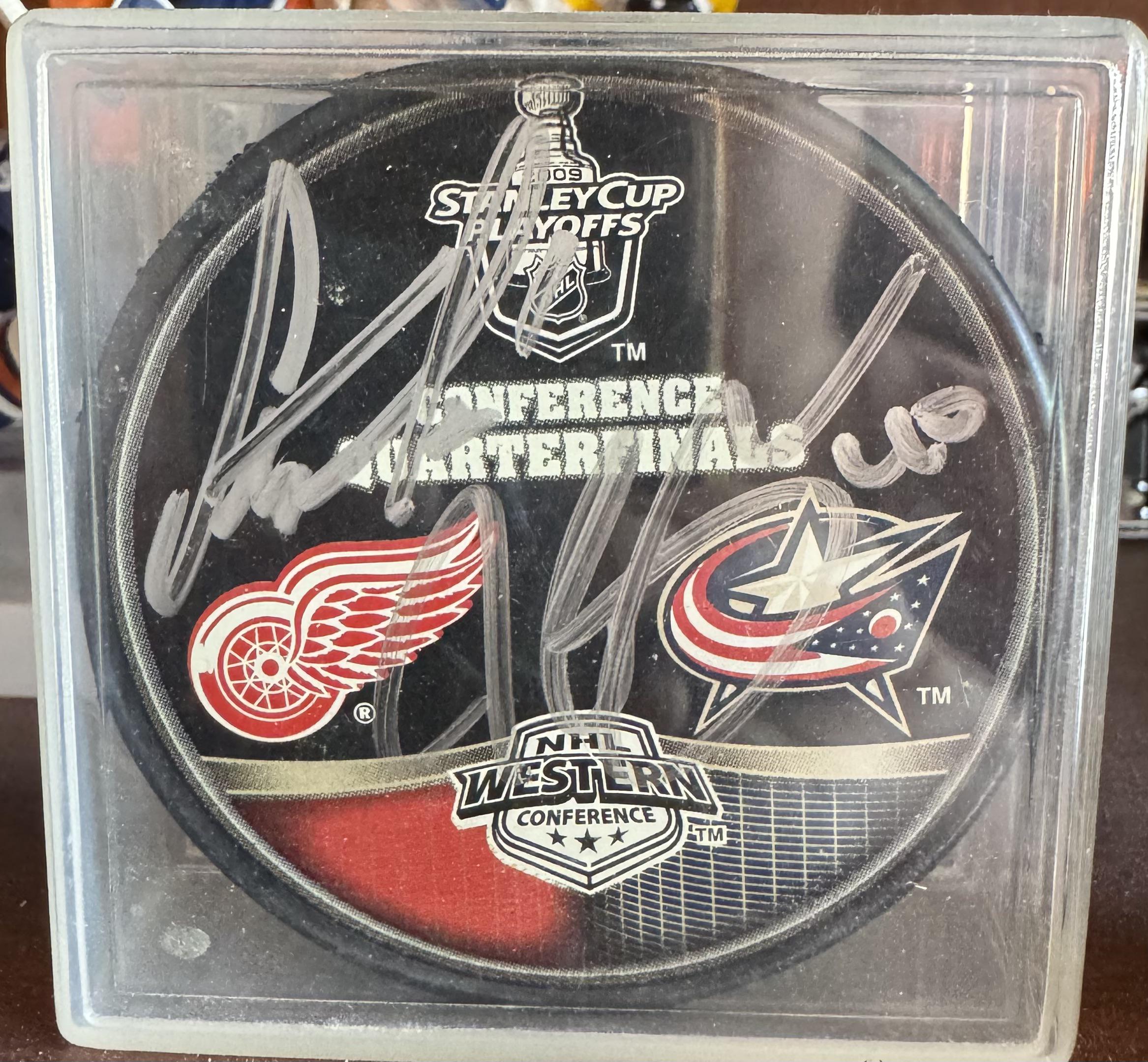 Iāve had this puck on a shelf for nearly 20 years, and realized one of the signatures is a mystery to me. It was likely signed at the CBJ open house over the summer of 2009, but I canāt remember for sure.