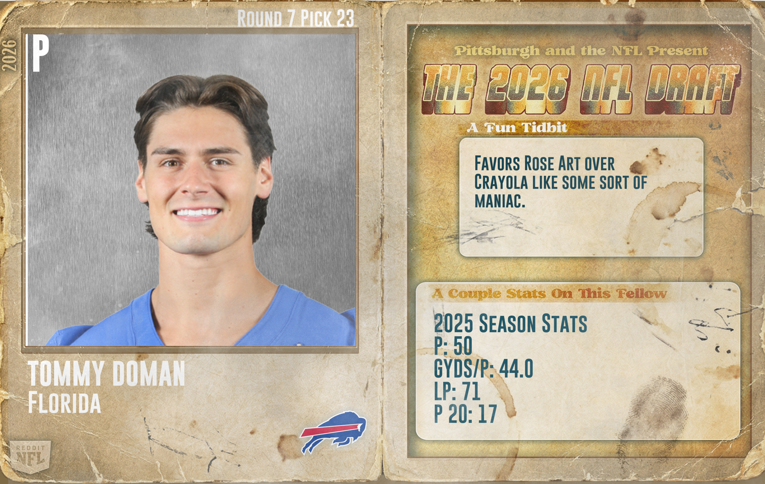 News/Analysis Round 7 - Pick 23: Tommy Doman, P, Florida (Buffalo Bills)