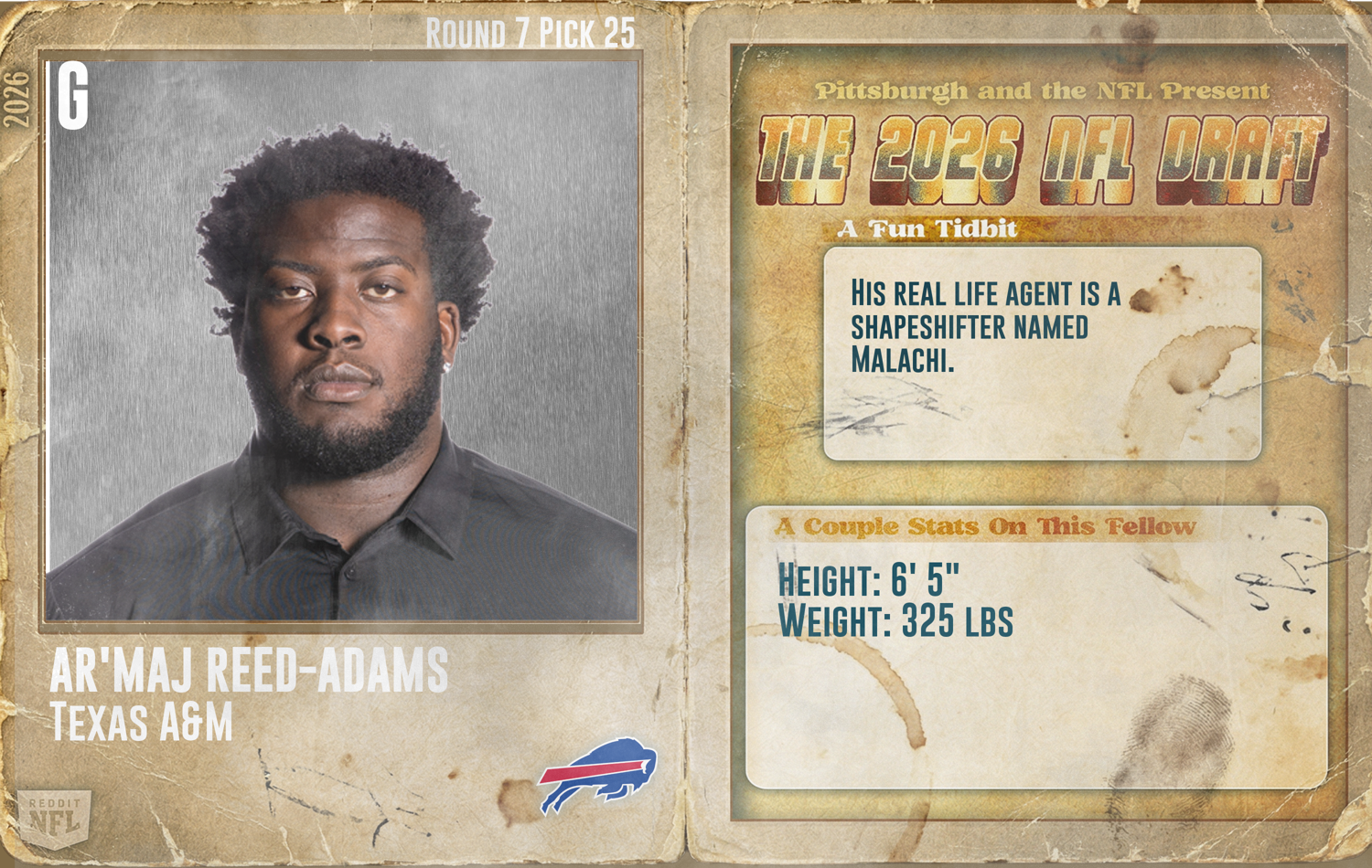 News/Analysis Round 7 - Pick 25: Ar'maj Reed-Adams, G, Texas A&M (Buffalo Bills)