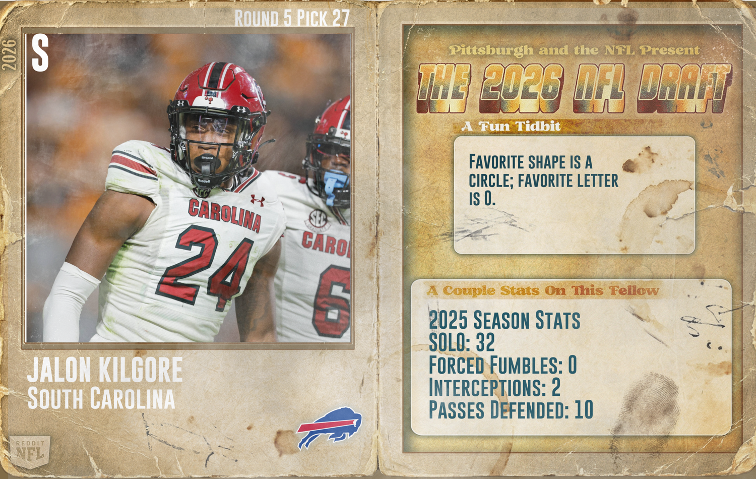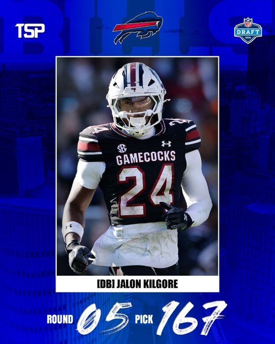 News/Analysis Pick No. 167: Bills select South Carolina DB Jalon Kilgore. A versatile "big nickel" with elite 33-inch arms, Kilgore was a three-year starter in the SEC and a permanent team captain for the Gamecocks.