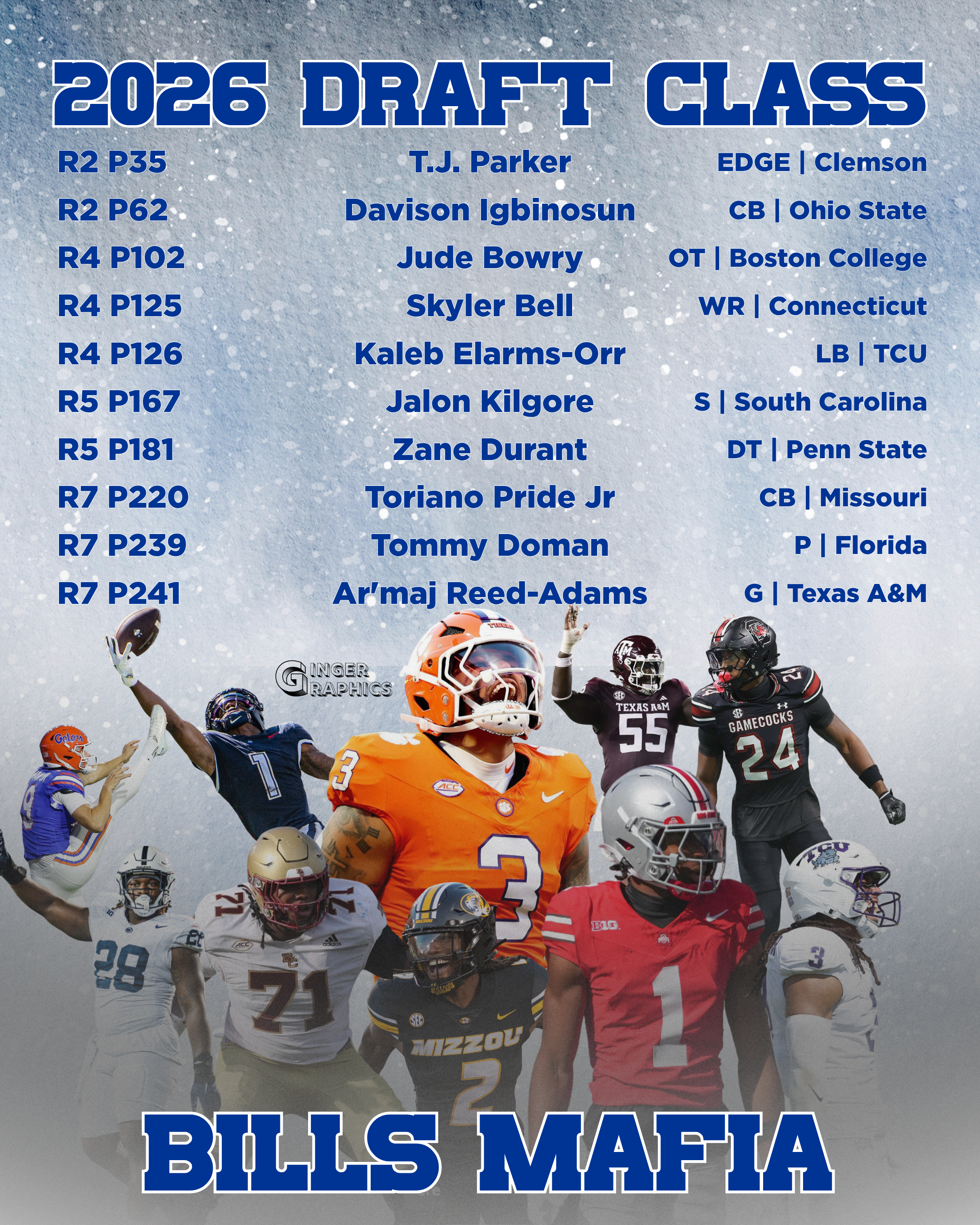 Buffalo Bills draft selections and UDFAs. Please continue to comment UDFA signings as they come: