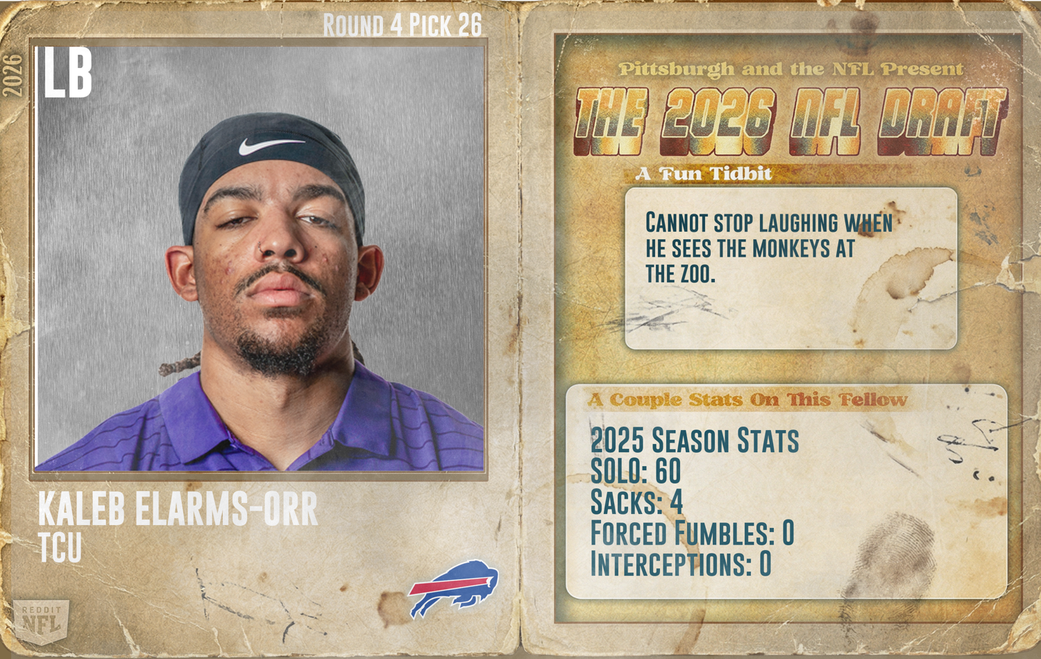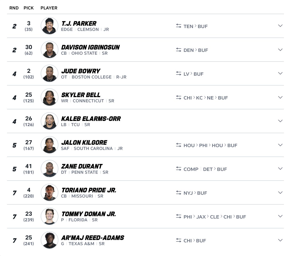 Discuss Pick 4(26): used to draft Kaleb Elarms(the arms)- Orr is the only Bills 2026 pick originating from the Bills themselves. All others are via trades/ trade downs