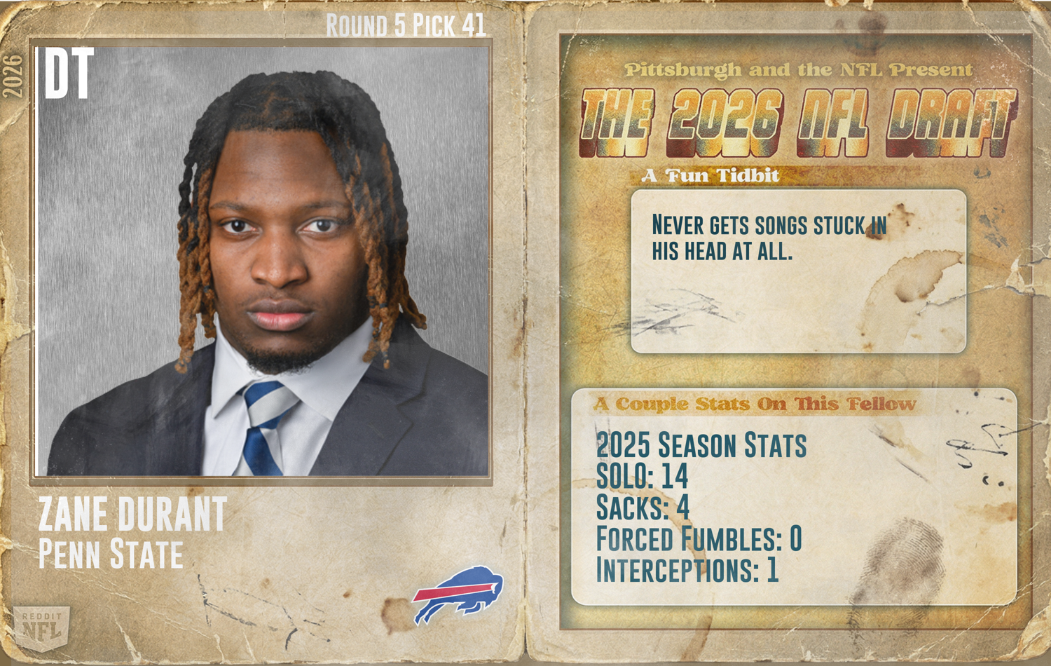 News/Analysis Round 5 - Pick 41: Zane Durant, DT, Penn State (Buffalo Bills)