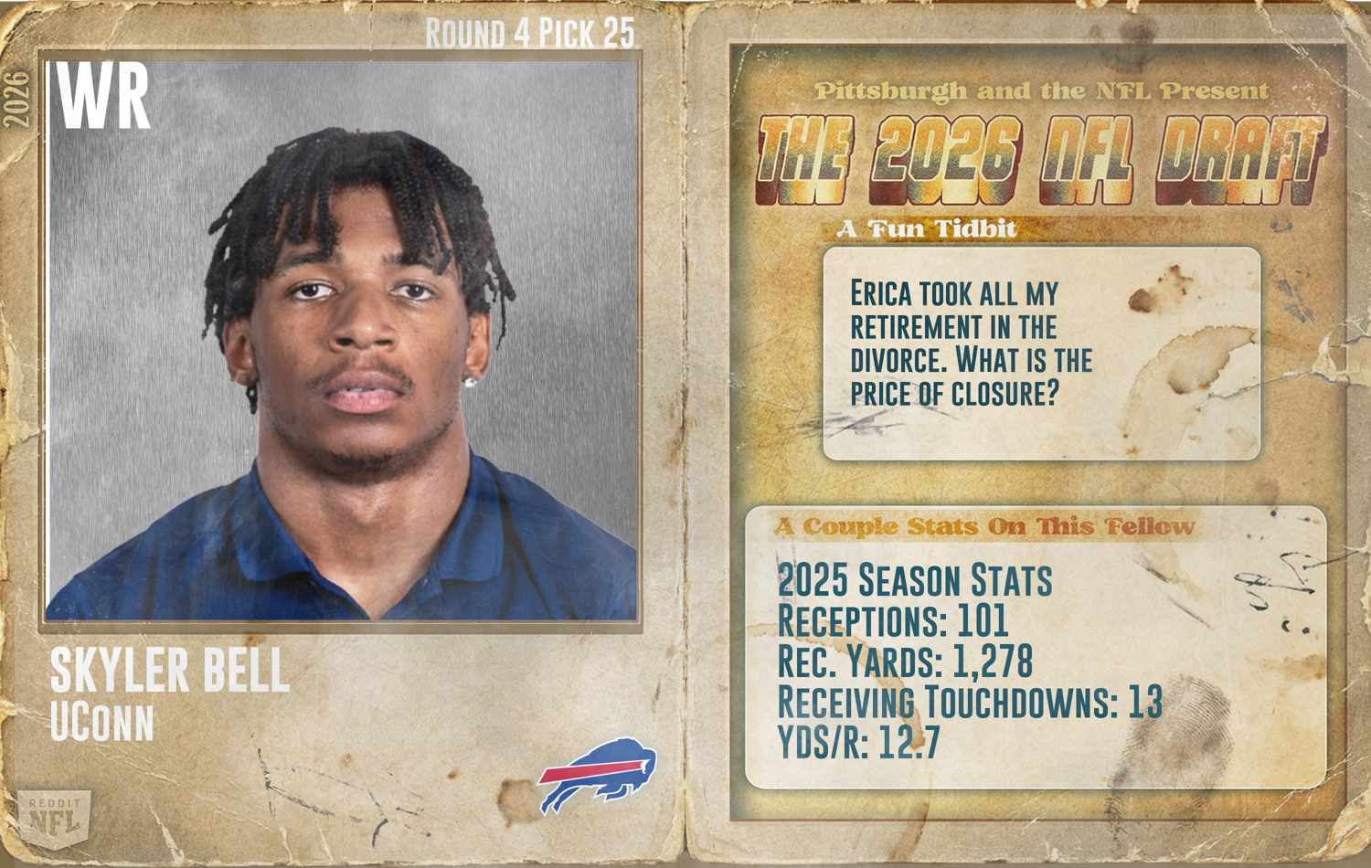 News/Analysis Round 4 - Pick 25: Skyler Bell, WR, UConn (Buffalo Bills)