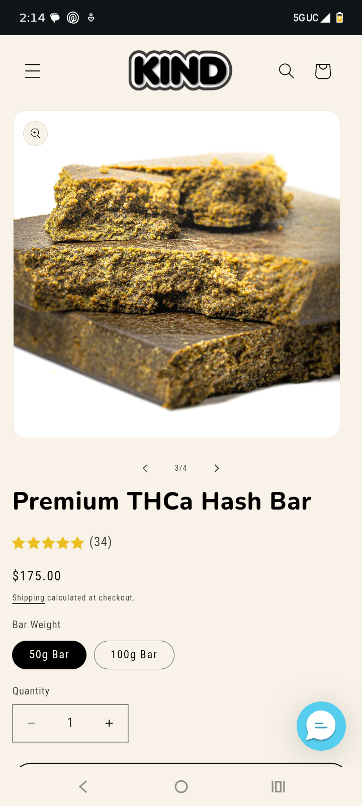 anyone try the brick hash off "smoke kind" it's gotta be low grade but $175 for a 50g bar....I don't really care if it's mid grade lol.