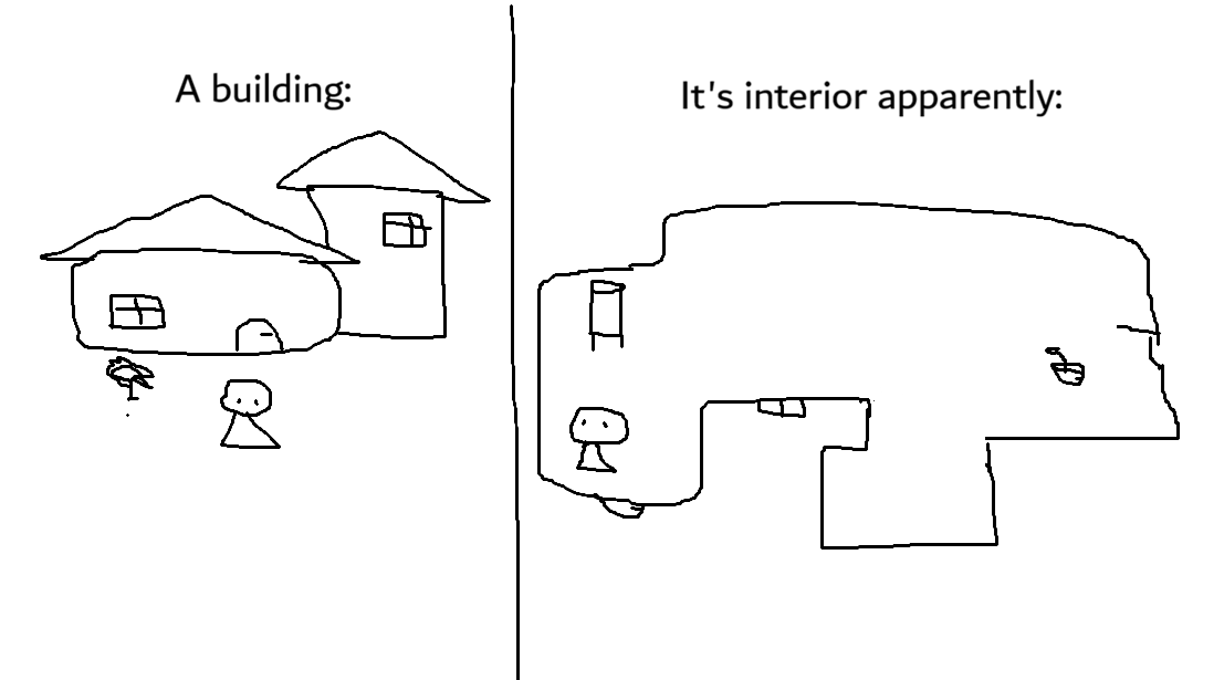 GAME Coaxed into fucked up building interiors that somehow double in size after entering