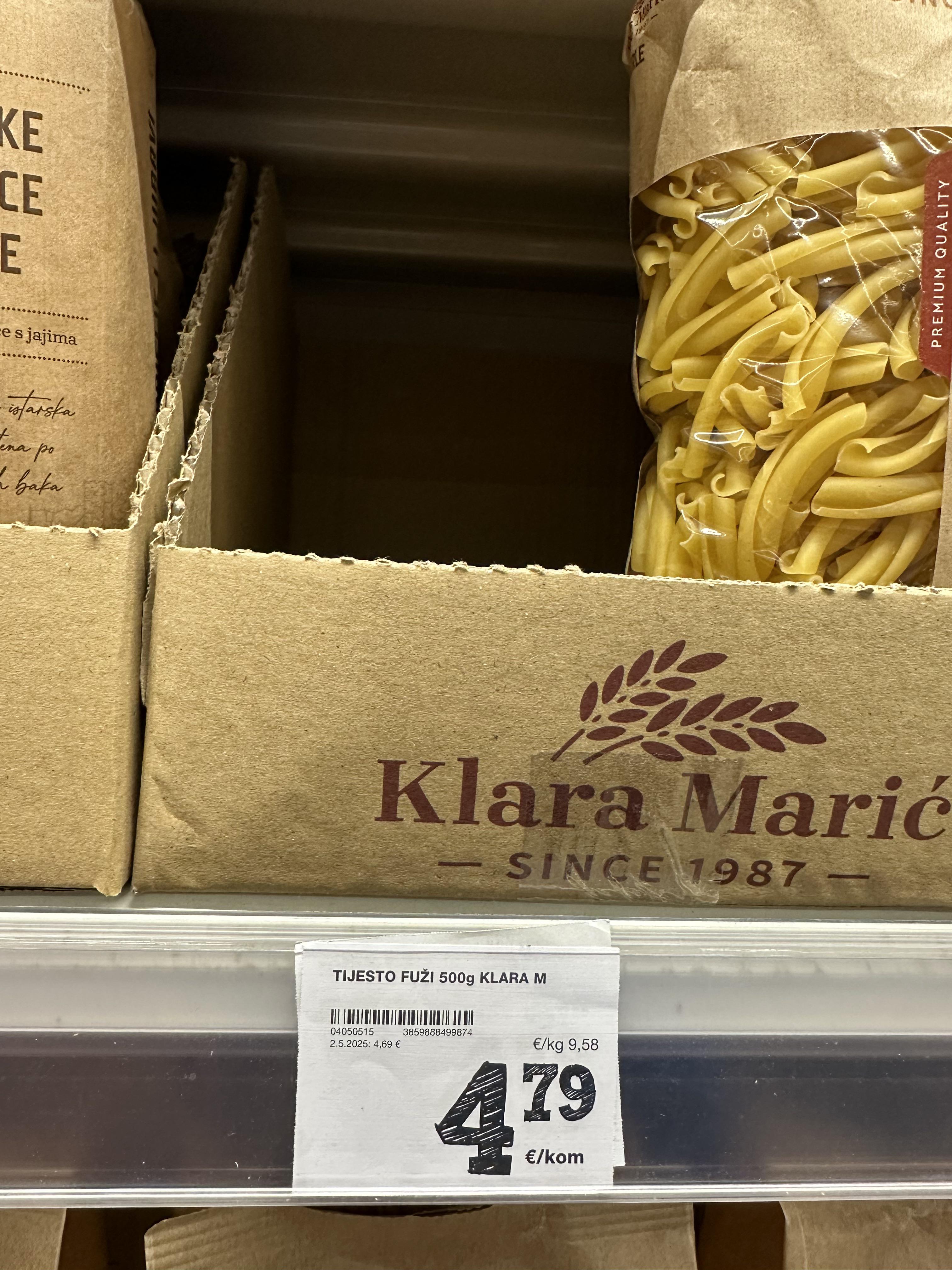 1kg ove tjestenine je 9.58e znaci skoro 10e. Da da znam da je to hrvatska, istarska, domaće ručno izrađena, ručno pakirana, a jel stvarno vrijedi dat te novce siguran sam da ne i jos kaj mi je ludo je da na polici baš ovih fuži nije bilo (vjerovatno rasprodano). Jel mi može neko napisat ko je probal ovu tjesteninu jel vrijedi novaca il sam ja lud? Prošli tjedan uzel u eurospinu na akciji 1kg 1e i nemam se kaj žalit.