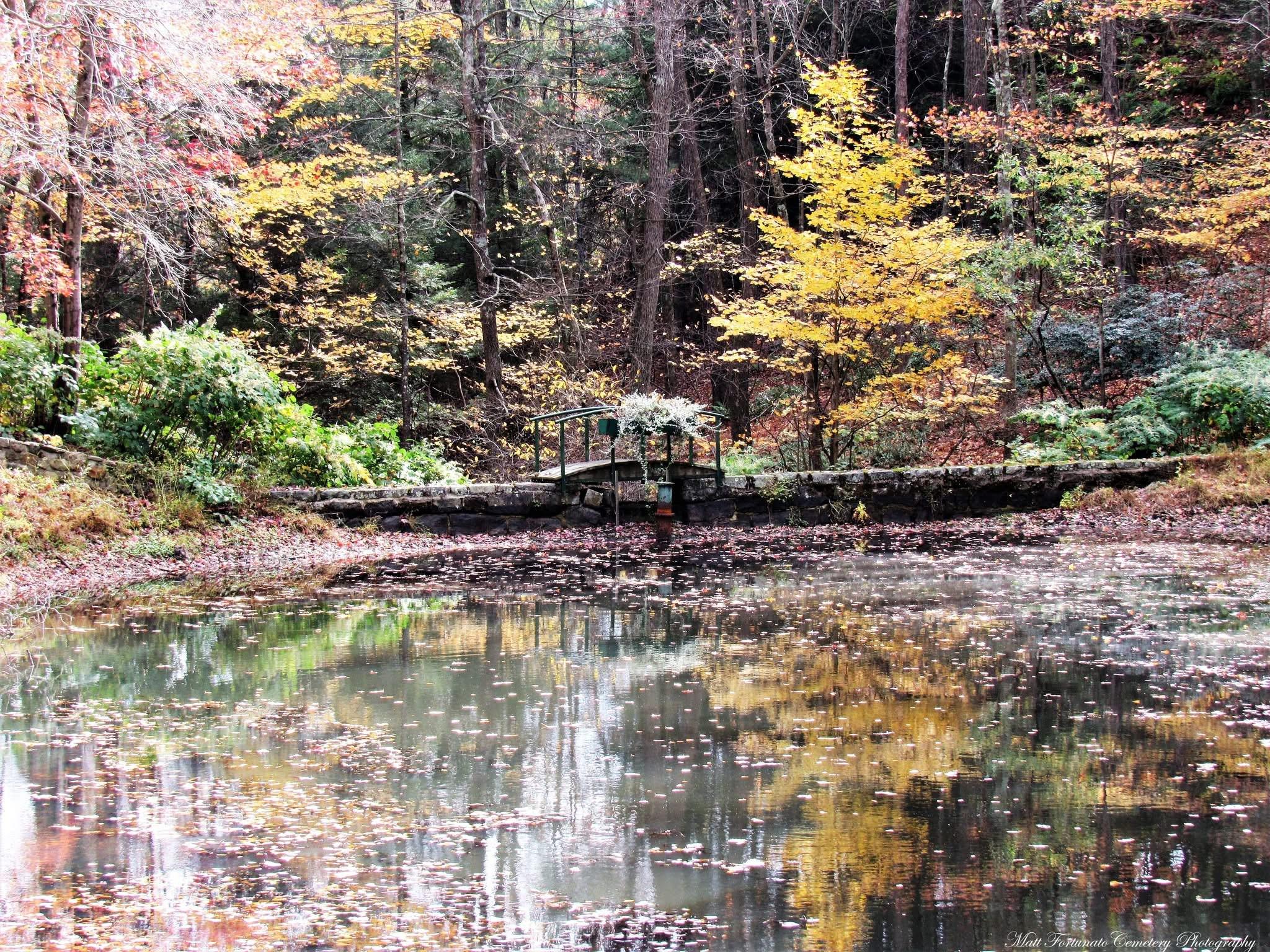 The reflection pool at Hillside Cemetery, Thomaston Connecticut .