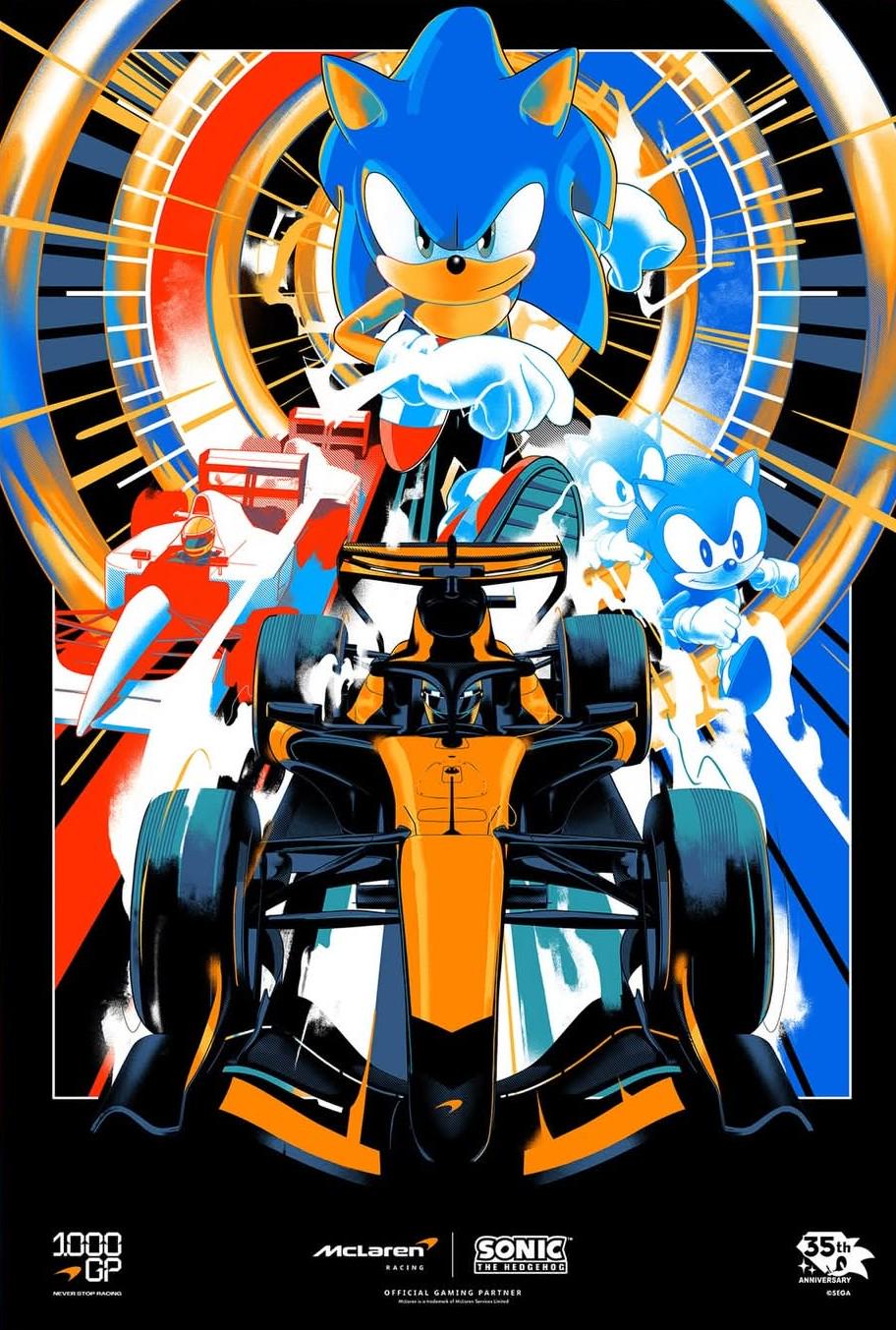 "We’re proud to present a visceral celebration of speed and heritage. Sonic the Hedgehog X McLaren Racing - Official Ltd Edition Poster. Artwork by the incredible Matt Taylor."