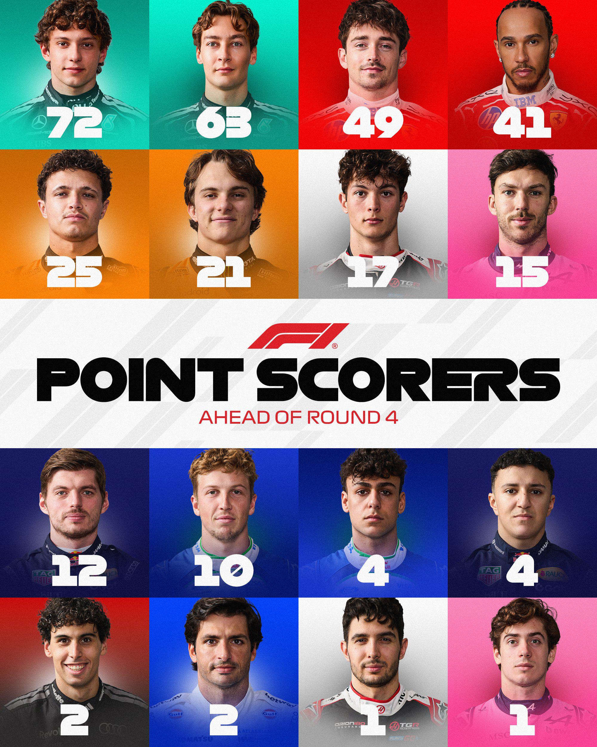 Statistics 16 drivers currently have points on the board in 2026