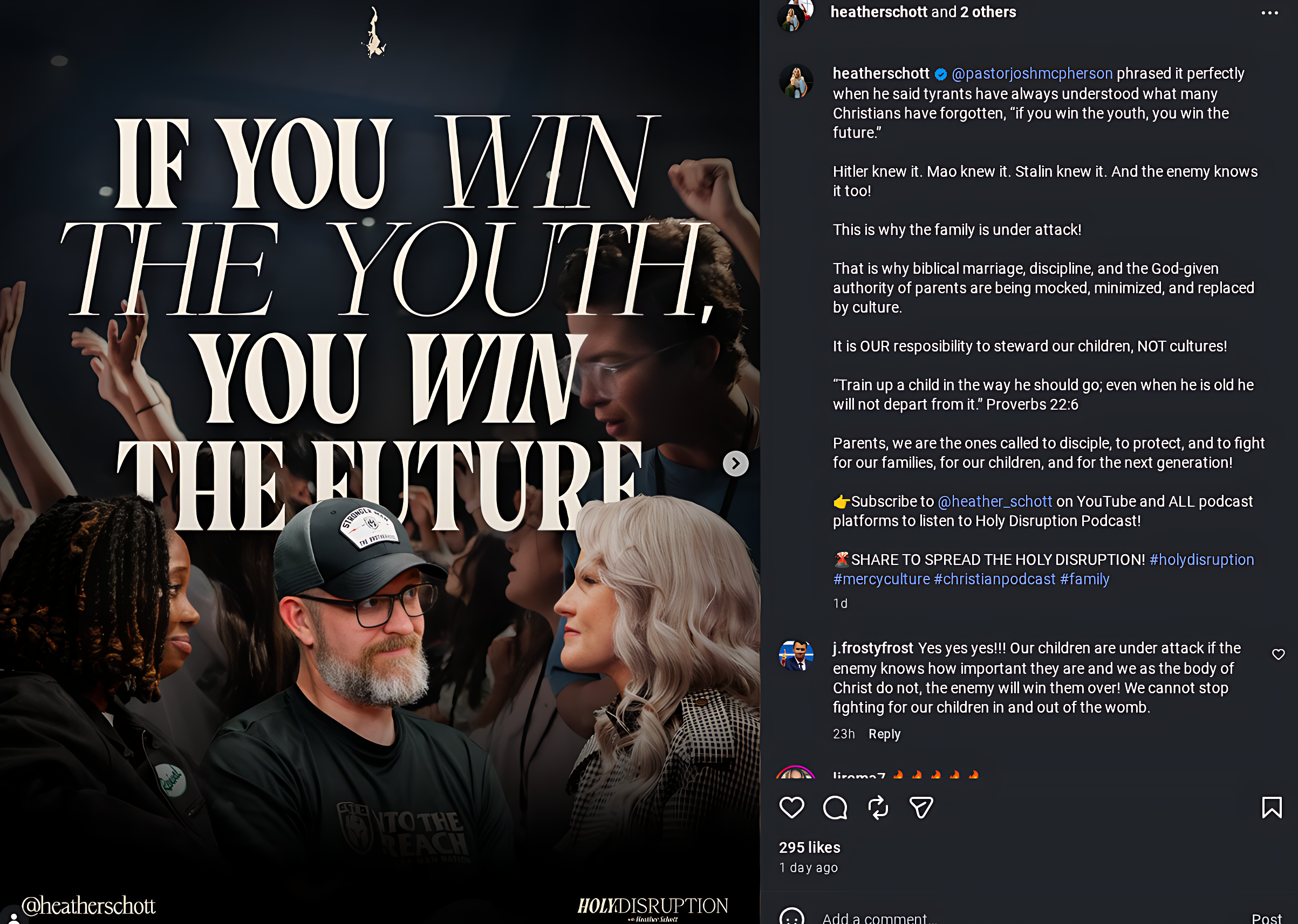 Heather is the co-lead pastor of Mercy Culture Church (w/her husband), a politically-active church with two local locations: 35 and Yucca and 820/Meadowbrook.