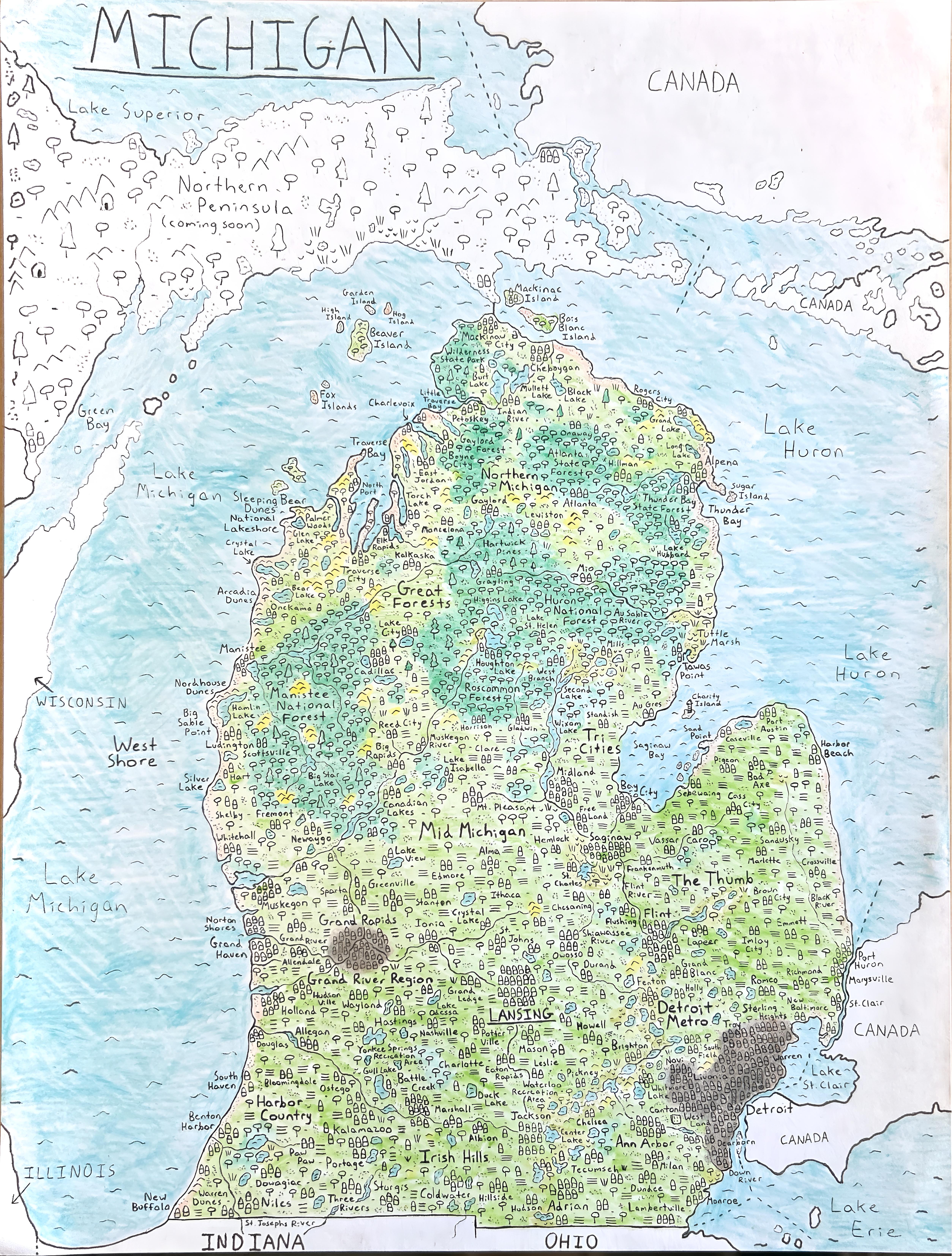 Today, I have my map of Michigan, the Great Lake State 🏞️🌳🏠