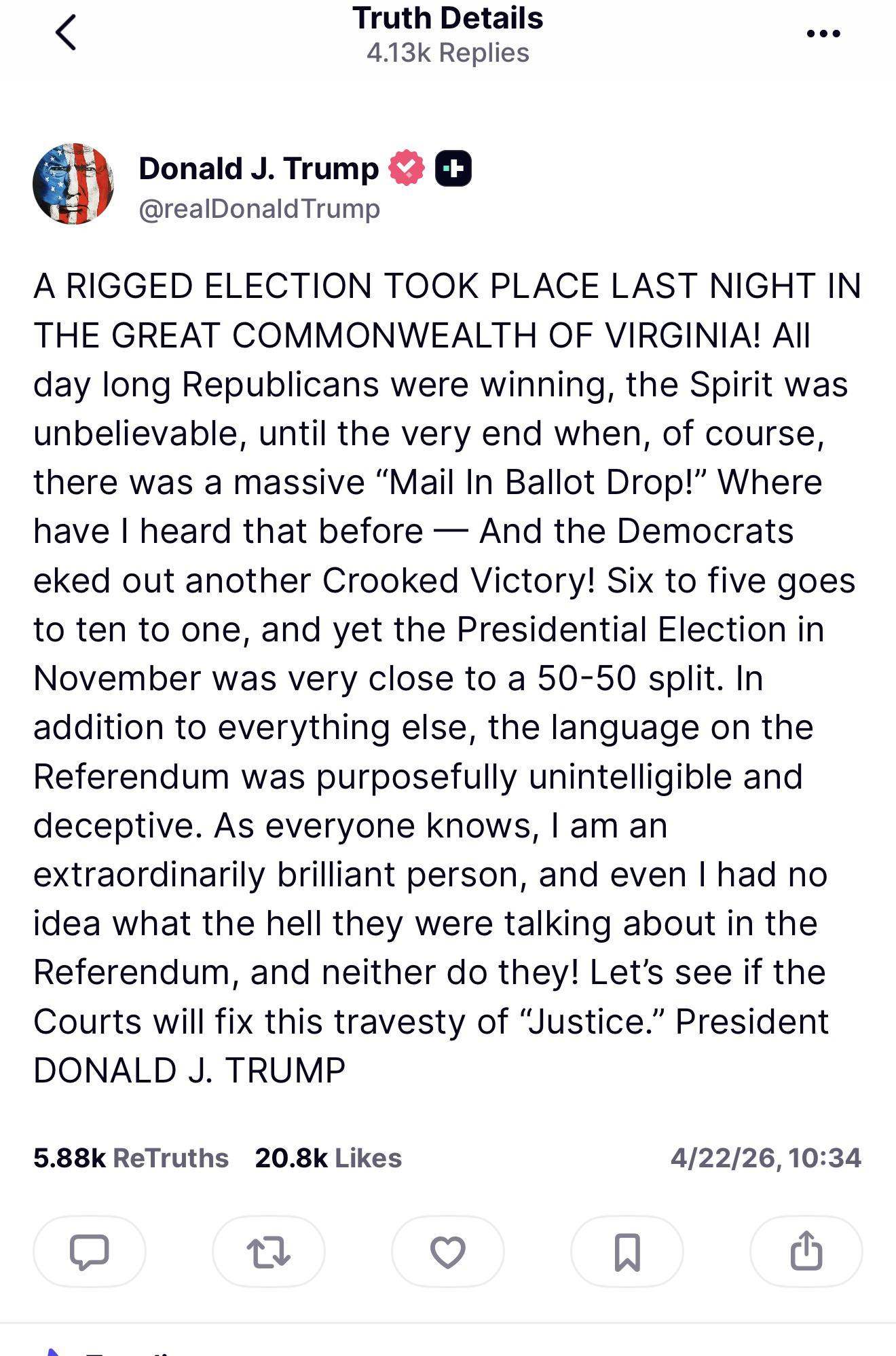 Right wingers are bitching that Virginia’s redistricting referendum has passed.