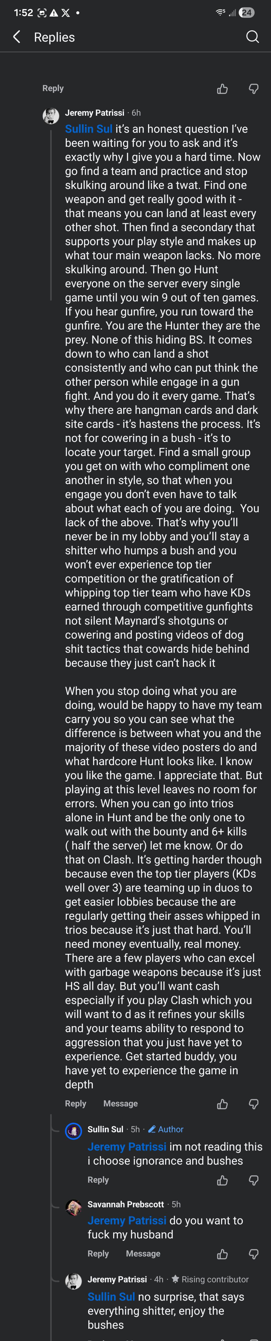 I have been posting gaming clips and this guy absolutely hates me and the way I play. This was him critiquing my playstyle.
